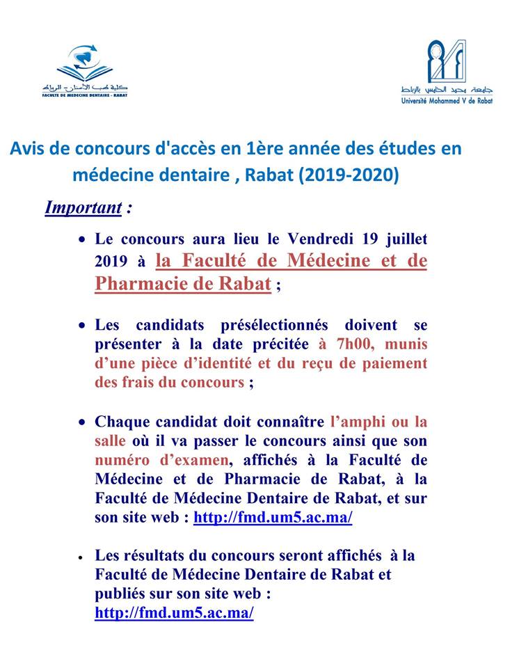 Alwadifa Maroc / Alwadifa Rabat / Emploi public / Etablissement Public / Offre d'emploi maroc / Offre d'emploi maroc / Offre d'emploi Rabat / Par ville / Resultats du concours / Type كلية طب الأسنان بالرباط لائحة المقبولين لاجتياز الاختبارات الكتابية 2019-2020 ShareSharePin It كلية طب الأسنان بالرباط لائحة المقبولين لاجتياز الكتابي 2019-2020 لائحة المقبولين