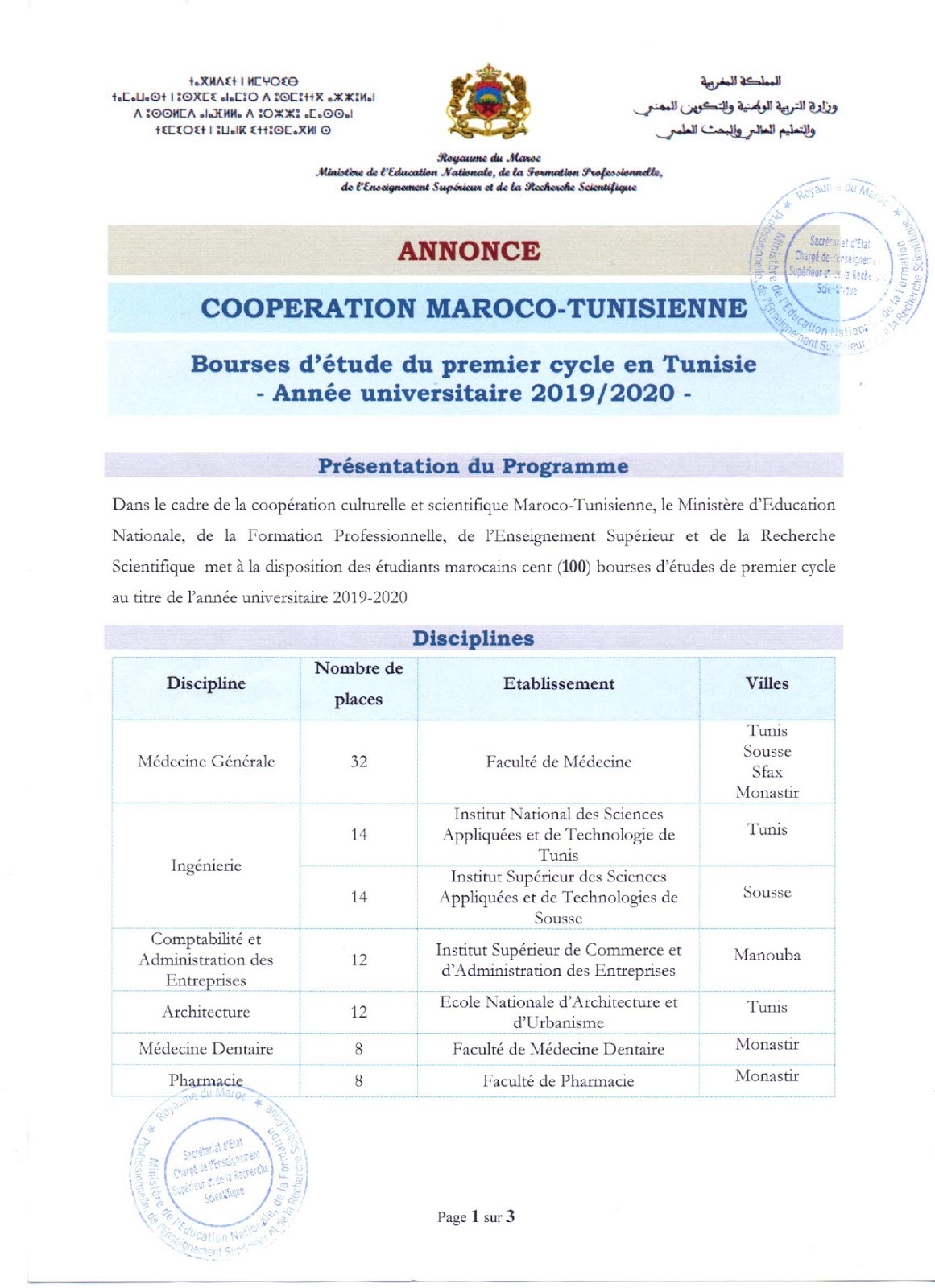 Alwadifa Maroc / Autres offres d'emploi / Bourses d'études / Emploi public / Offre d'emploi maroc تونس: منح للدراسة بالسلك الأول برسم السنة الجامعية 2019-2020 ShareSharePin It تونس: منح للدراسة بالسلك الأول برسم السنة الجامعية 2019-2020