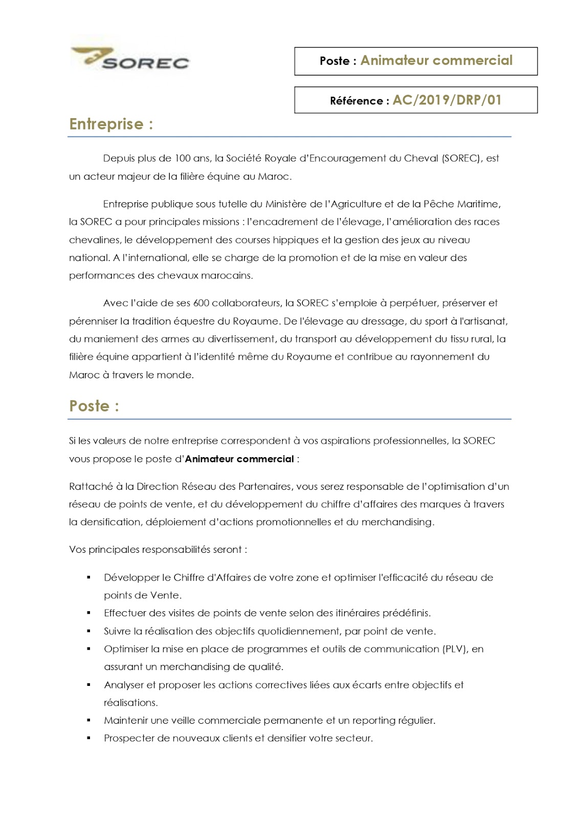 Alwadifa Maroc / Alwadifa tout le Maroc / Emploi diplomés / Emploi public / Etablissement Public / Offre d'emploi maroc / Offres d'emploi Bac + 2 / Par fonction / Par ville / Type الشركة الملكية لتشجيع الفرس مباراة لتوظيف 01 منشط تجاري آخر أجل 8 غشت 2019 ShareSharePin It الشركة الملكية لتشجيع الفرس مباراة لتوظيف 01 منشط تجاري آخر أجل 8 غشت 2019 ملأ استمارة طلب الترشيح