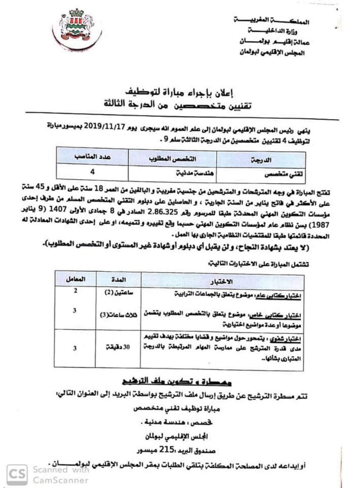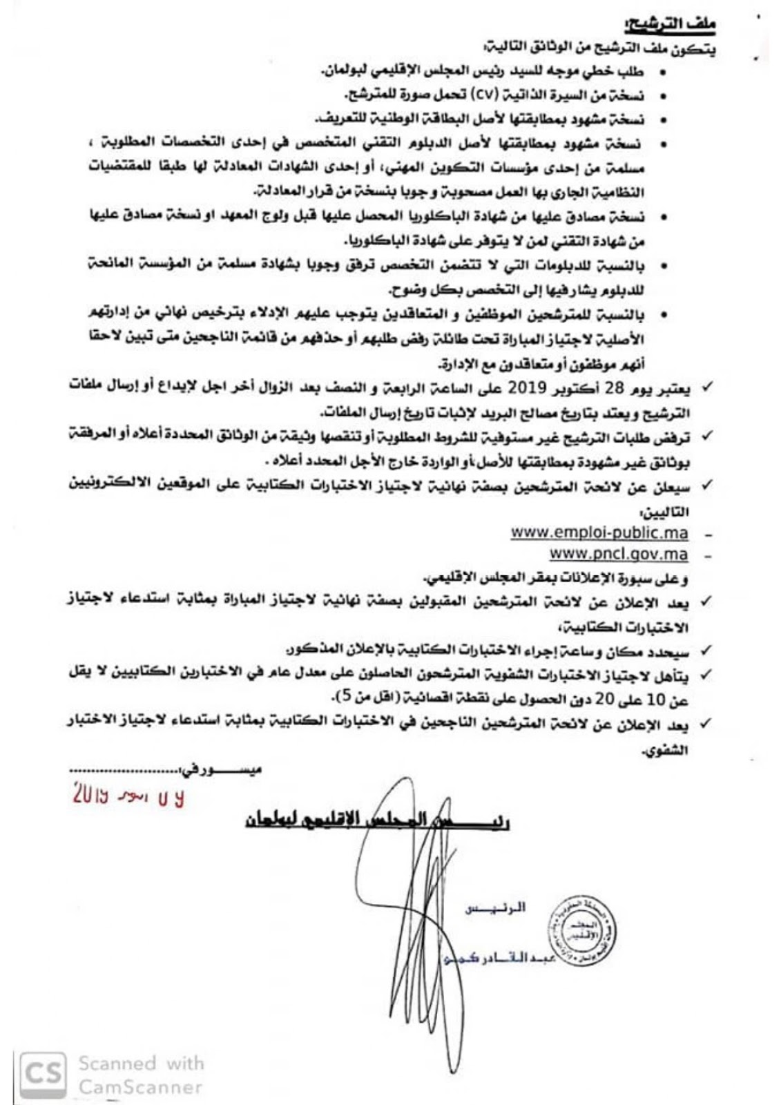Alwadifa Maroc / Alwadifa technicien / Alwadifa tout le Maroc / Autres offres d'emploi / Emploi public / Offre d'emploi maroc / Offres d'emploi technicien / Par fonction / Par ville المجلس الإقليمي لبولمان مباراة لتوظيف 04 تقني من الدرجة الثالثة آخر أجل 28 اكتوبر 2019 ShareSharePin It المجلس الإقليمي لبولمان مباراة توظيف 04 تقني من الدرجة الثالثة آخر أجل 28 اكتوبر 2019