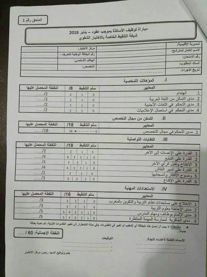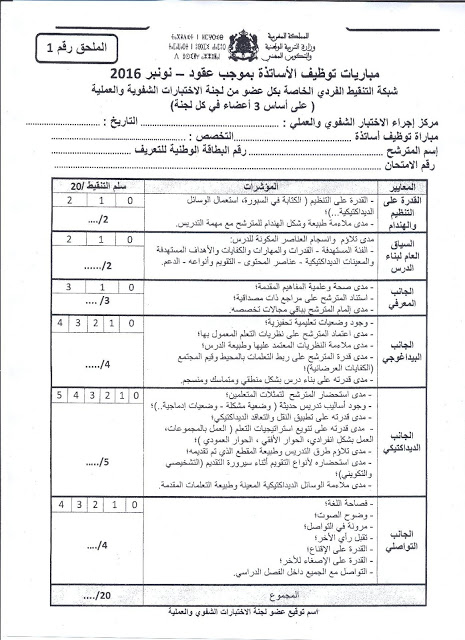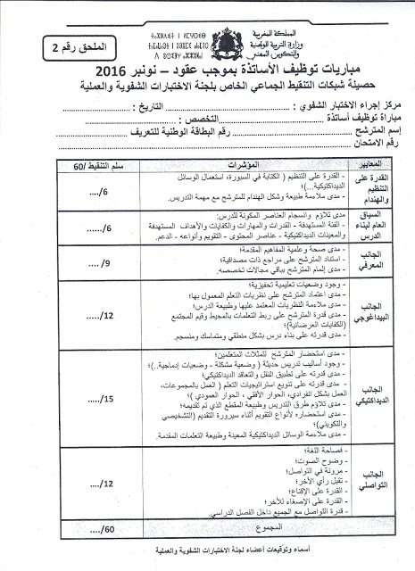 Alwadifa Maroc / Alwadifa TAALIM / Autres offres d'emploi / Emploi public / Offre d'emploi maroc نمادج لشبكة التنقيط الخاصة بالإختبار الشفوي لمباراة توظيف أطر الأكاديميات دورة نونبر 2019 ShareSharePin It نمادج لشبكة التنقيط الخاصة بالإختبار الشفوي لمباراة توظيف أطر الأكاديميات دورة نونبر 2019