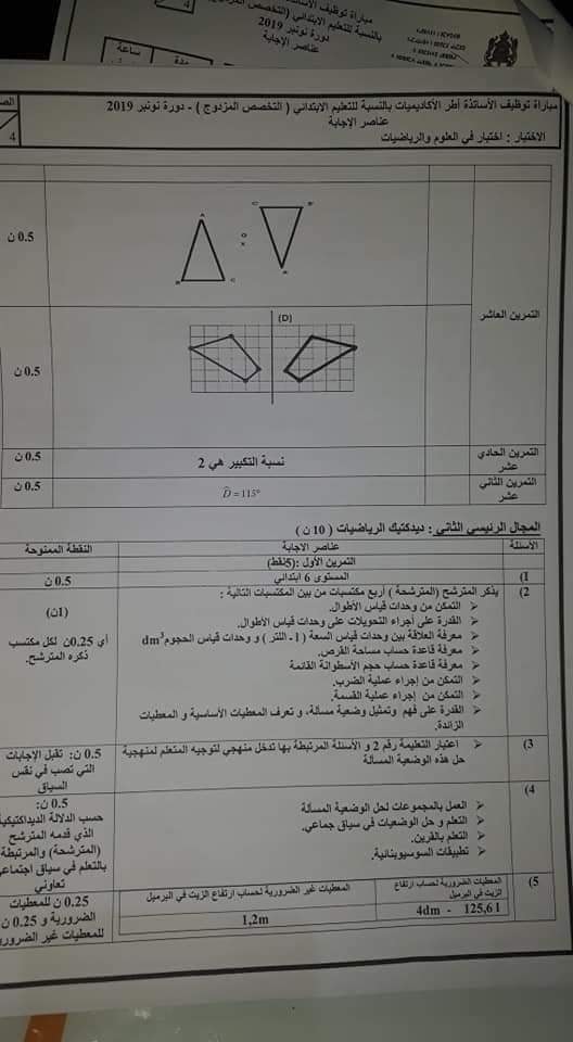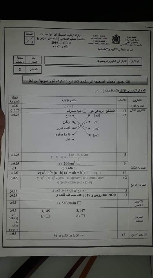Alwadifa Maroc / Alwadifa TAALIM / Autres offres d'emploi / Emploi public / Modèles d'examen / Offre d'emploi maroc عناصر الإجابة لمادة الرياضيات – إبتدائي دورة نونبر 2019 ShareSharePin It عناصر الإجابة لمادة الرياضيات – إبتدائي دورة نونبر 2019