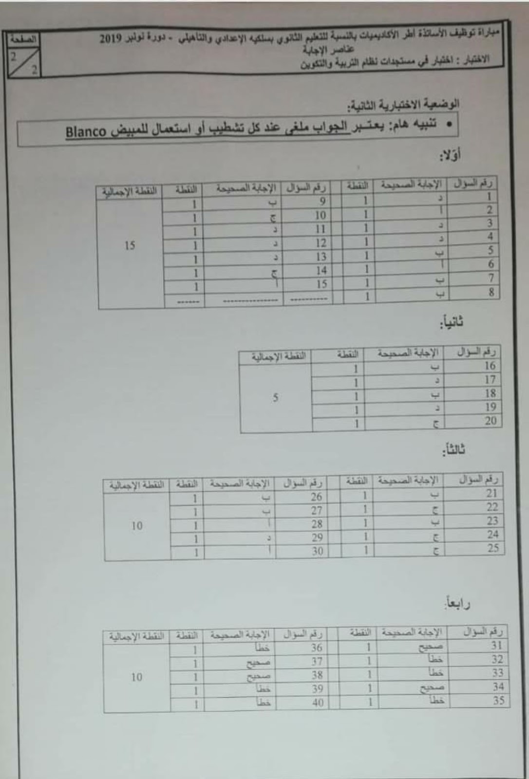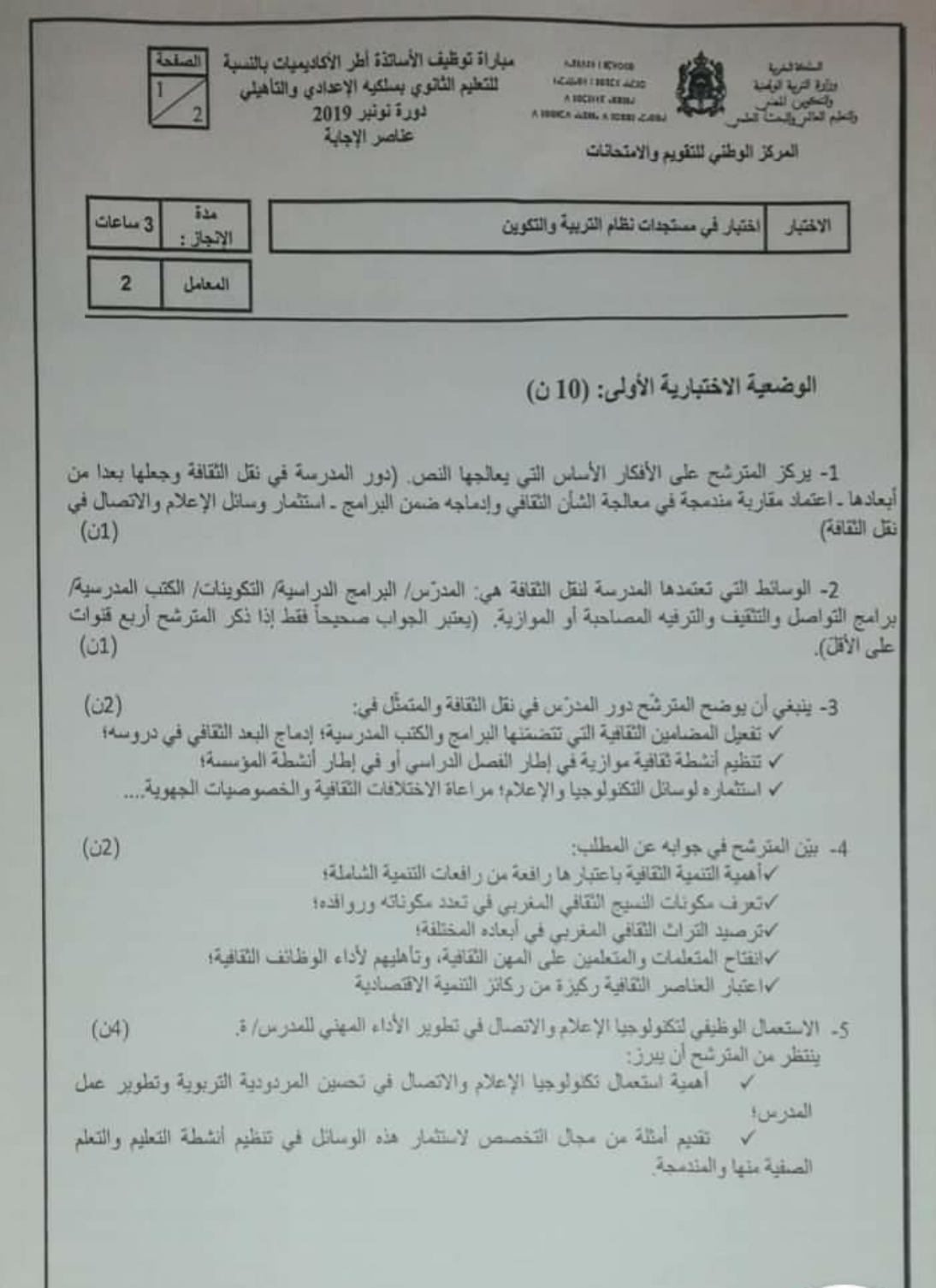 Alwadifa Maroc / Alwadifa TAALIM / Autres offres d'emploi / Emploi public / Modèles d'examen / Offre d'emploi maroc عناصر الإجابة لمستجدات التربية و التكوين – تخصص ثانوي دورة نونبر 2019 ShareSharePin It عناصر الإجابة لمستجدات التربية و التكوين – تخصص ثانوي دورة نونبر 2019