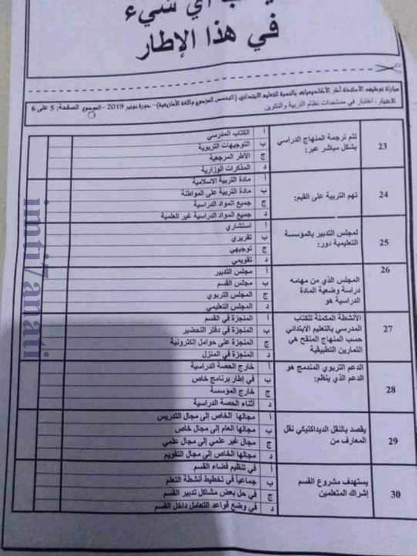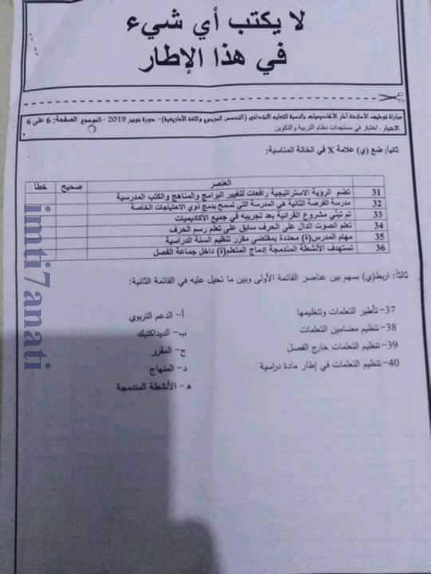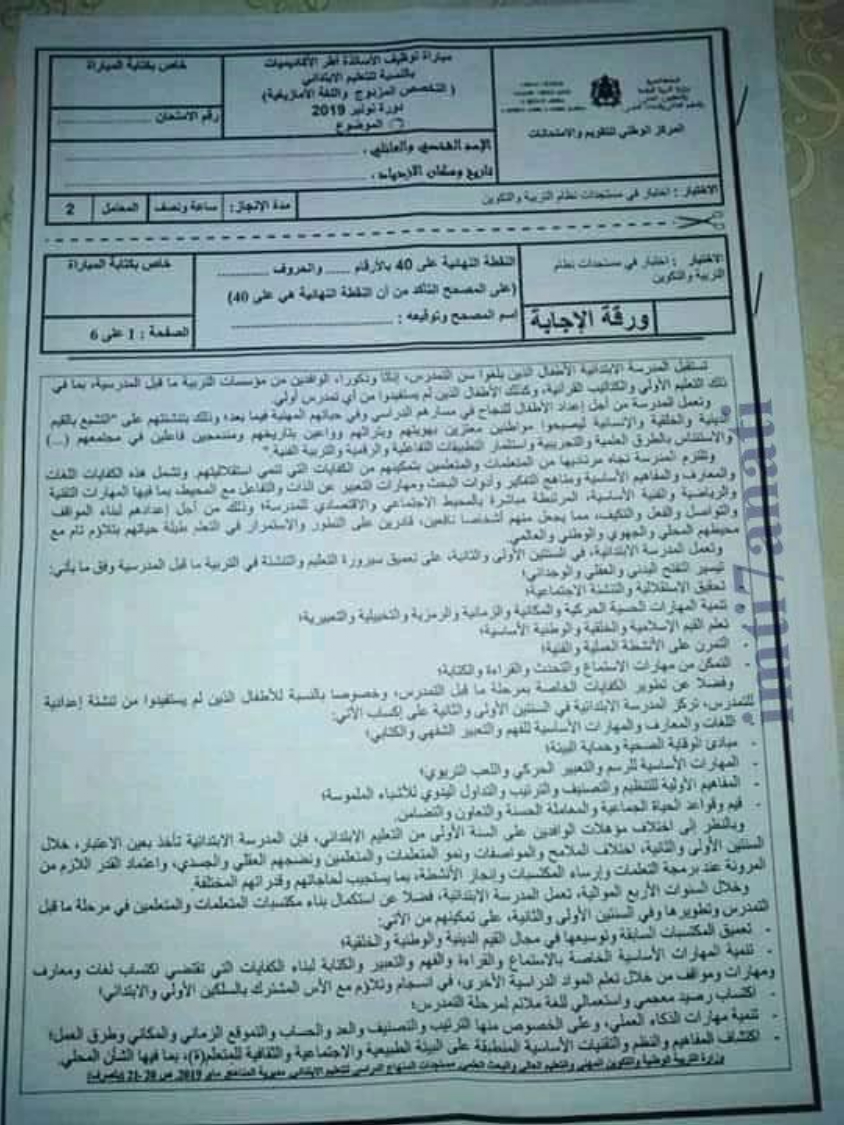 Alwadifa Maroc / Autres offres d'emploi / Emploi public / Modèles d'examen / Offre d'emploi maroc الاختبار الكتابي في مادة مستجدات التربية و التكوين – سلك الابتدائي دورة نونبر 2019 ShareSharePin It الاختبار الكتابي في مادة مستجدات التربية و التكوين – سلك الابتدائي دورة نونبر 2019