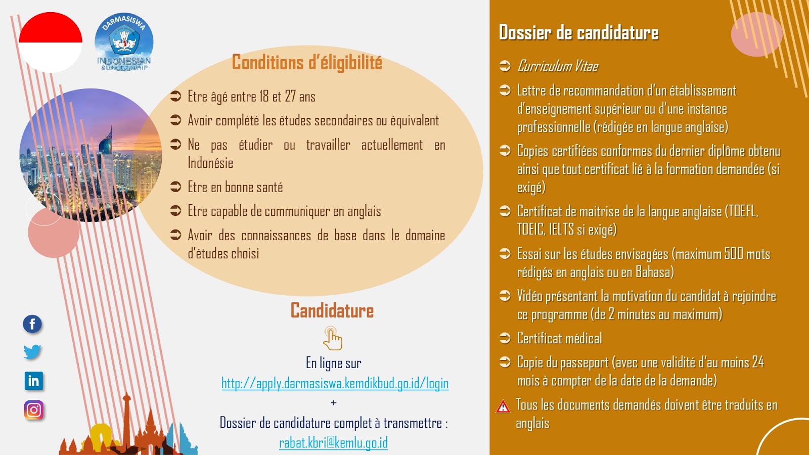 Alwadifa Maroc / Autres offres d'emploi / Bourses d'études / Emploi public / Offre d'emploi maroc منح دراسية بأندونيسيا 2020-2021 ShareSharePin It منح دراسية بأندونيسيا 2020-2021 Brochure Annexe Candidature en ligne