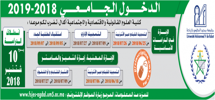 كلية العلوم القانونية والاقتصادية والاجتماعية اكدال بالرباط تواريخ التسجيل لولوج الماستر آخر آجل 06 يوليوز 2018