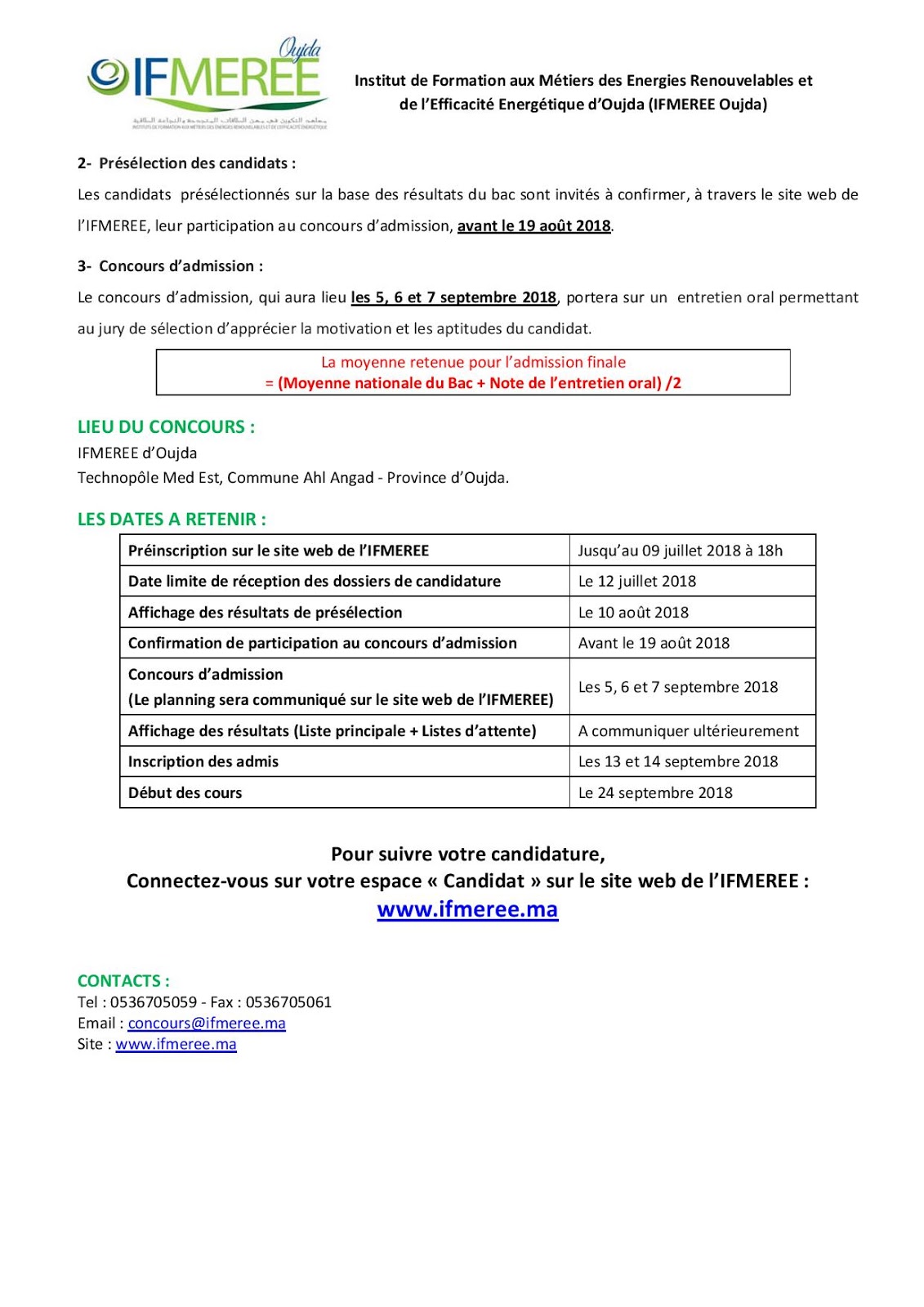 Alwadifa baccalauréat / Alwadifa Maroc / Autres offres d'emploi / Par ville / Voir les autres villes وظائف مباراة ولوج معاهد التكوين في مهن الطاقات المتجددة والنجاعة الطاقية بوجدة ShareSharePin It مباراة ولوج معاهد التكوين في مهن الطاقات المتجددة والنجاعة الطاقية بوجدة 2018-2019