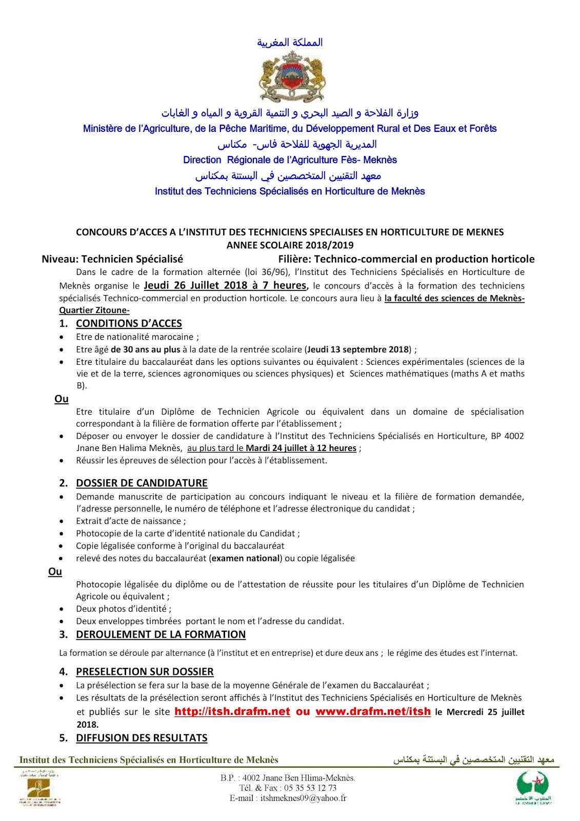 Alwadifa baccalauréat / Alwadifa Maroc / Alwadifa Meknes / Autres offres d'emploi / Offres d'emploi baccalauréat / Par fonction / Par ville وظائف مباراة لولوج معهد التقنيين المتخصصين في البستنة بمكناس ShareSharePin It مباراة لولوج معهد التقنيين المتخصصين في البستنة بمكناس 2018-2019
