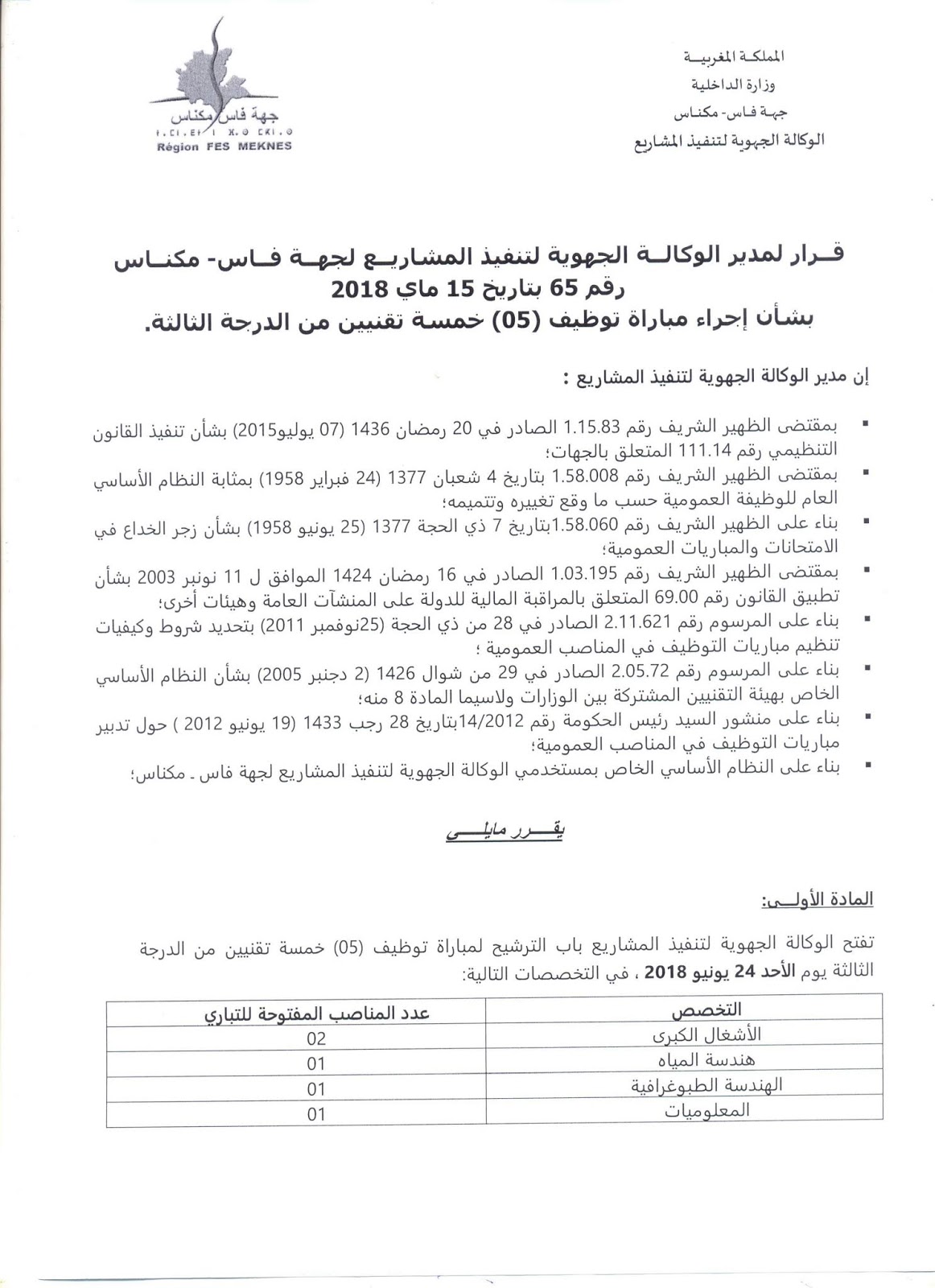 Alwadifa Fes / Alwadifa Maroc / Alwadifa Meknes / Alwadifa technicien / Autres offres d'emploi / Offres d'emploi technicien / Par fonction / Par ville وظائف الوكالة الجهوية لتنفيذ المشاريع لجهة فاس ء مكناس مباراة لتوظيف 05 تقنيين من الدرجة الثالثة آخر أجل 8 يونيو ShareSharePin It الوكالة الجهوية لتنفيذ المشاريع لجهة فاس – مكناس مباراة لتوظيف 05 تقنيين من الدرجة الثالثة آخر أجل 8 يونيو 2018