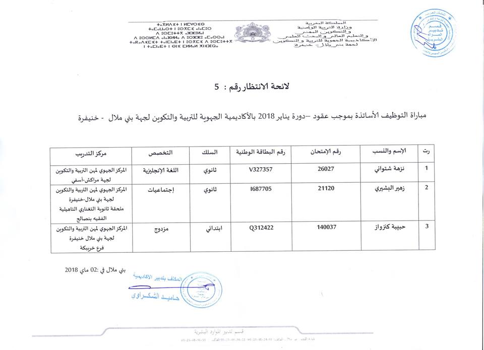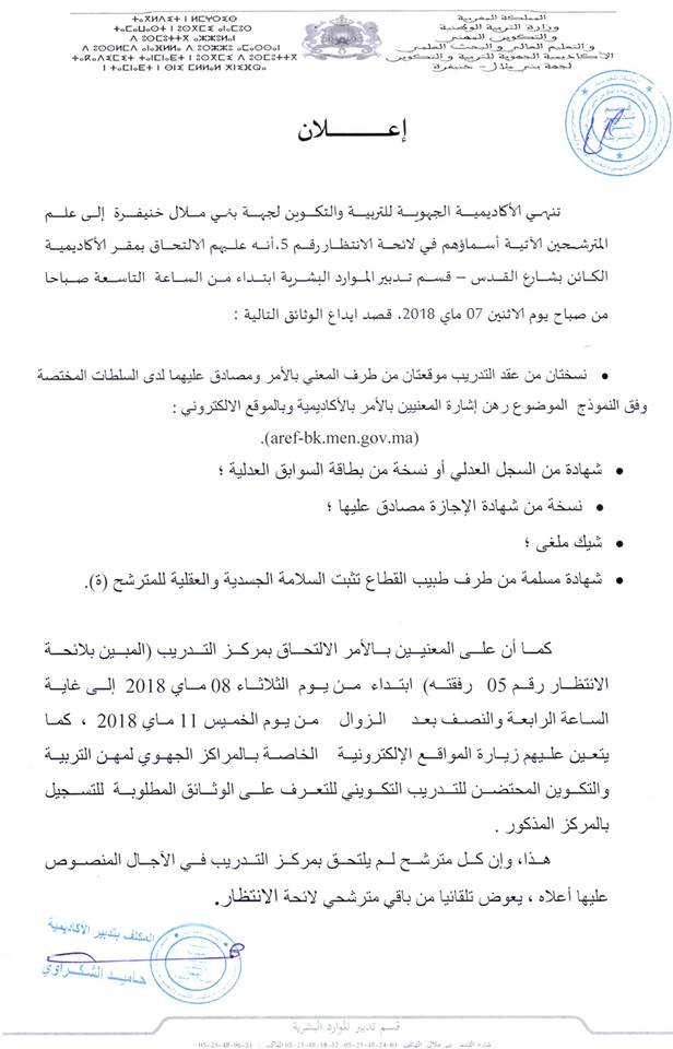 Alwadifa Beni Mellal / Alwadifa licence / Alwadifa Maroc / Autres offres d'emploi / Offres d'emploi Bac + 3 / Offres d'emploi Licence / Par fonction / Par ville وظائف الأكاديمية الجهوية للتربية والتكوين بني ملال خنيفرة لائحة الانتظار رقم (5) لمباراة التوظيف بالتعاقد ShareSharePin It الأكاديمية الجهوية للتربية والتكوين بني ملال خنيفرة لائحة الانتظار رقم (5) لمباراة التوظيف بالتعاقد دورة 2018