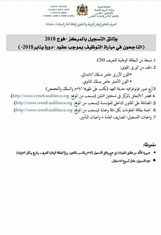 Alwadifa Maroc / Alwadifa TAALIM / Autres offres d'emploi وظائف الأكاديمية الجهوية للتربية والتكوين لجهة الدارالبيضاء سطات وثائق التسجيل بالنسبة للناجحون في مباراة التوظيف بموجب عقود دورة يناير ShareSharePin It الأكاديمية الجهوية للتربية والتكوين لجهة الدارالبيضاء سطات وثائق التسجيل بالنسبة للناجحون في مباراة التوظيف بموجب عقود دورة يناير 2018