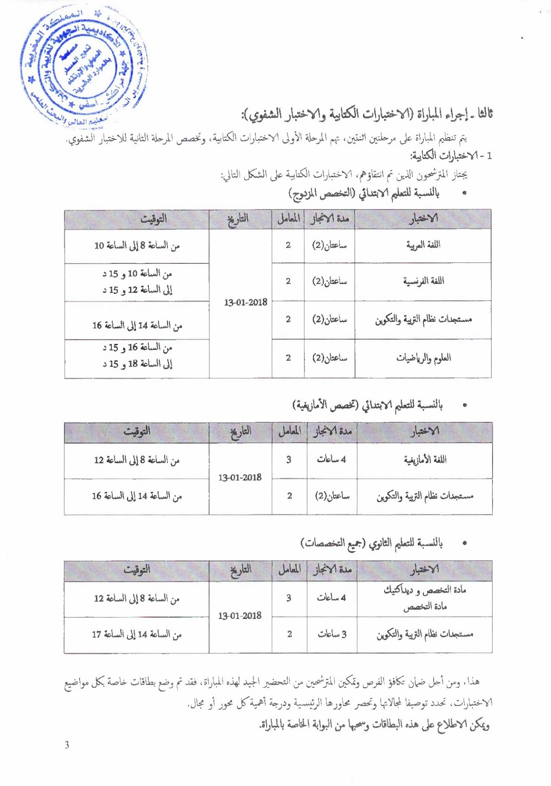 Alwadifa Maroc / Alwadifa Safi / Alwadifa TAALIM / Autres offres d'emploi / Offres d'emploi Licence / Par fonction / Par ville وظائف الأكاديمية الجهوية للتربية والتكوين لجهة مراكش أسفي مباراة لتوظيف 3264 أستاذ(ة) بموجب عقد اخر أجل هو 09 يناير ShareSharePin It الأكاديمية الجهوية للتربية والتكوين لجهة مراكش أسفي مباراة لتوظيف 3264 أستاذ(ة) بموجب عقد اخر أجل هو 09 يناير 2018 تحميل الإعلان