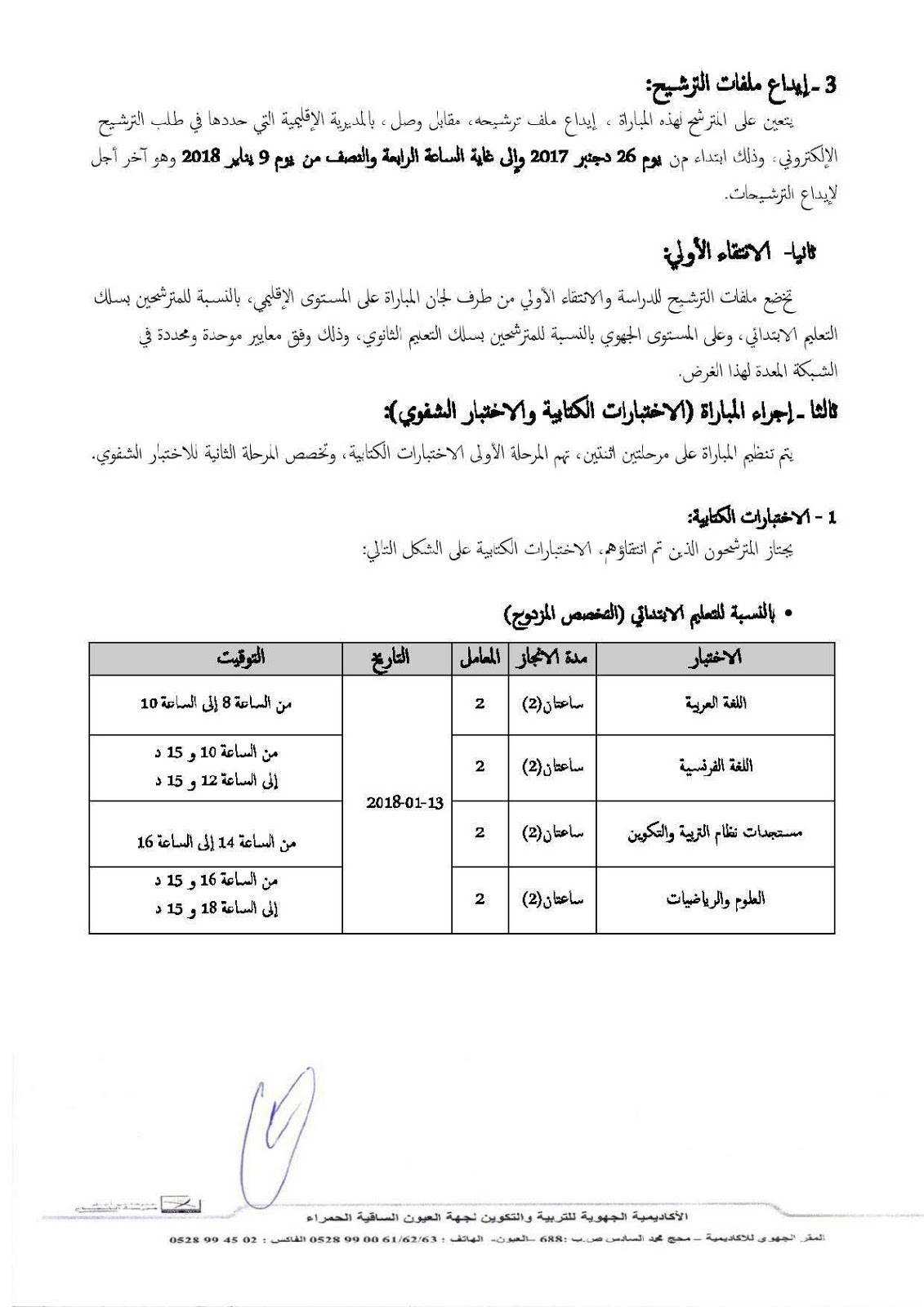 Alwadifa Laayoune / Alwadifa Maroc / Alwadifa TAALIM / Autres offres d'emploi / Offres d'emploi Licence / Par fonction / Par ville وظائف الأكاديمية الجهوية للتربية والتكوين لجهة العيون الساقية الحمراء مباراة لتوظيف 164 أستاذ(ة) بموجب عقد اخر أجل هو 09 يناير ShareSharePin It الأكاديمية الجهوية للتربية والتكوين لجهة العيون الساقية الحمراء مباراة لتوظيف 164 أستاذ(ة) بموجب عقد اخر أجل هو 09 يناير 2018 تحميل الإعلان