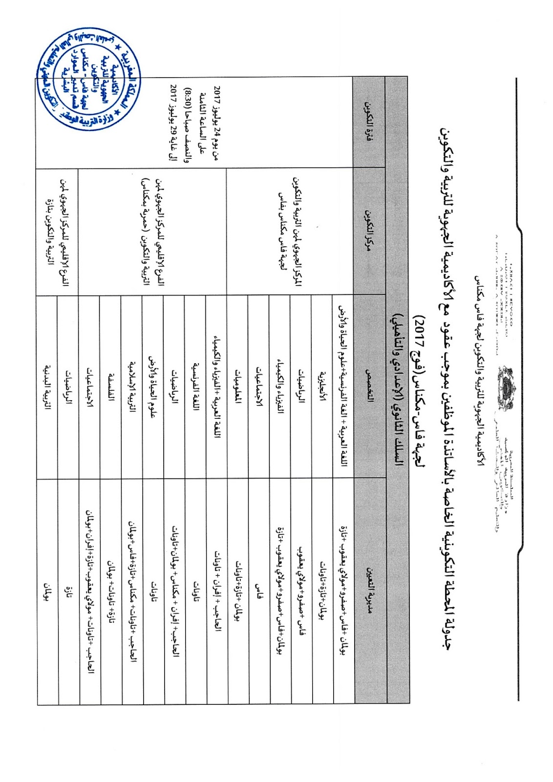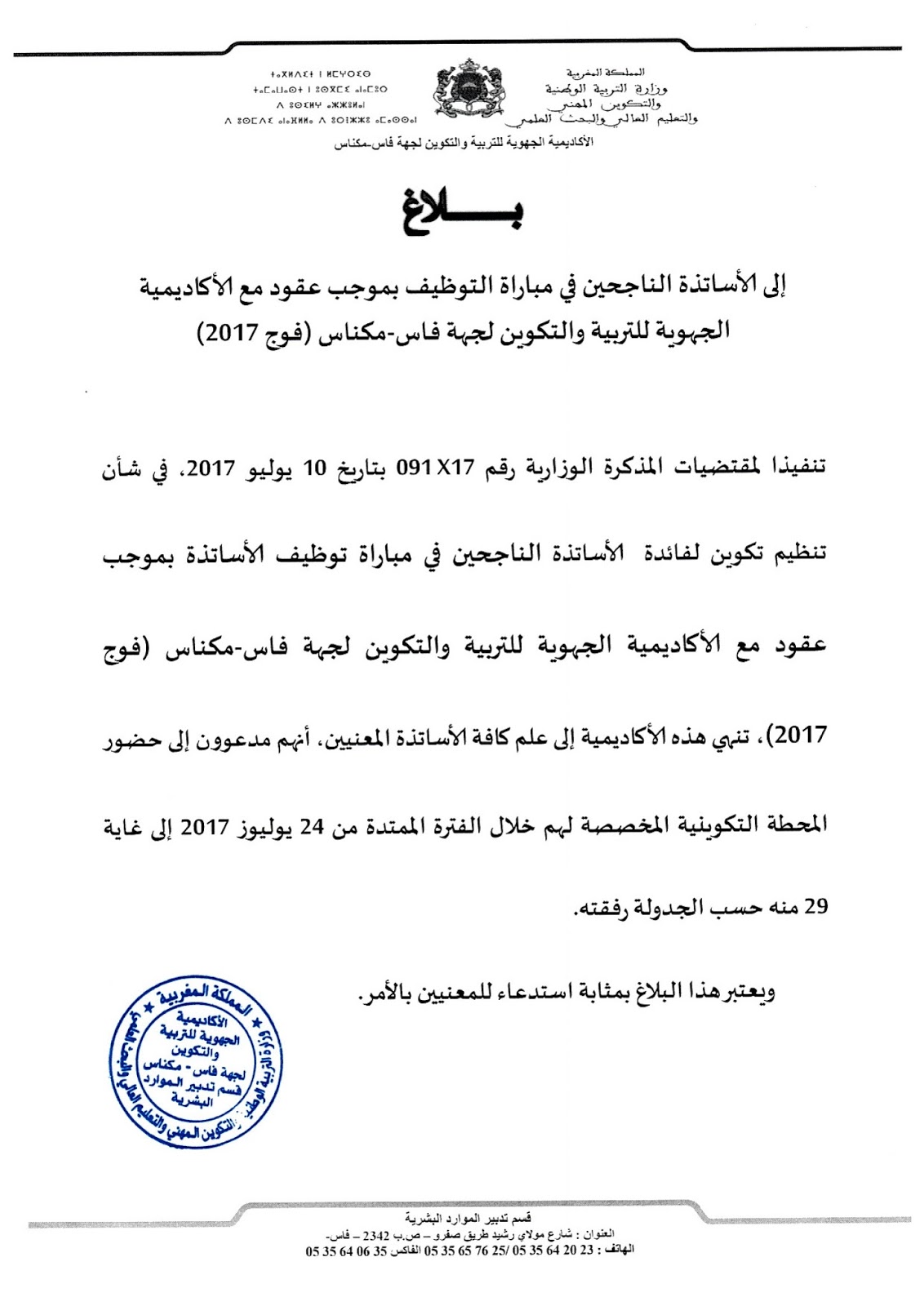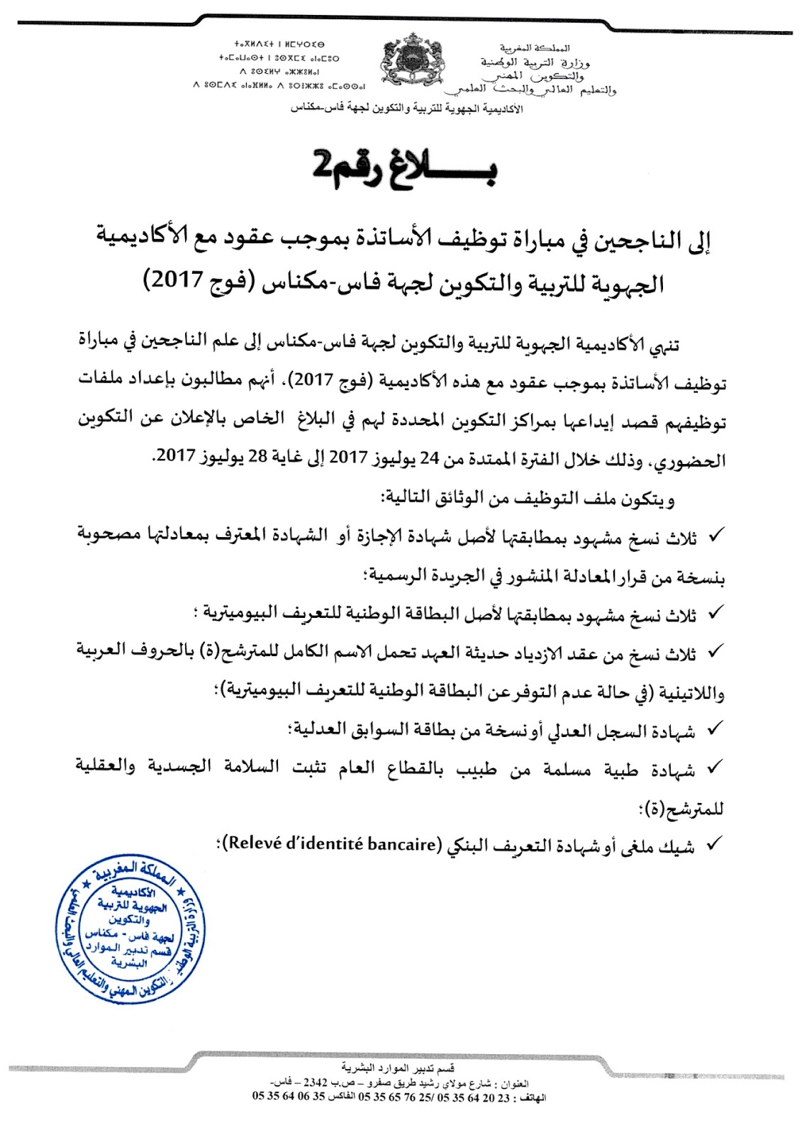 Alwadifa Maroc / Alwadifa Meknes / Alwadifa TAALIM / Autres offres d'emploi / Offre d'emploi maroc / Offres d'emploi Bac + 3 / Par fonction / Par ville وظائف الأكاديمية الجهوية للتربية والتكوين لجهة فاس مكناس إعلان إلى الناجحين بصفة نهائية في مباراة التوظيف بموجب عقود ء دورة يوليوز ShareSharePin It الأكاديمية الجهوية للتربية والتكوين لجهة فاس مكناس إعلان إلى الناجحين بصفة نهائية في مباراة التوظيف بموجب عقود – دورة يوليوز 2017 وثائق ملف التوظيف