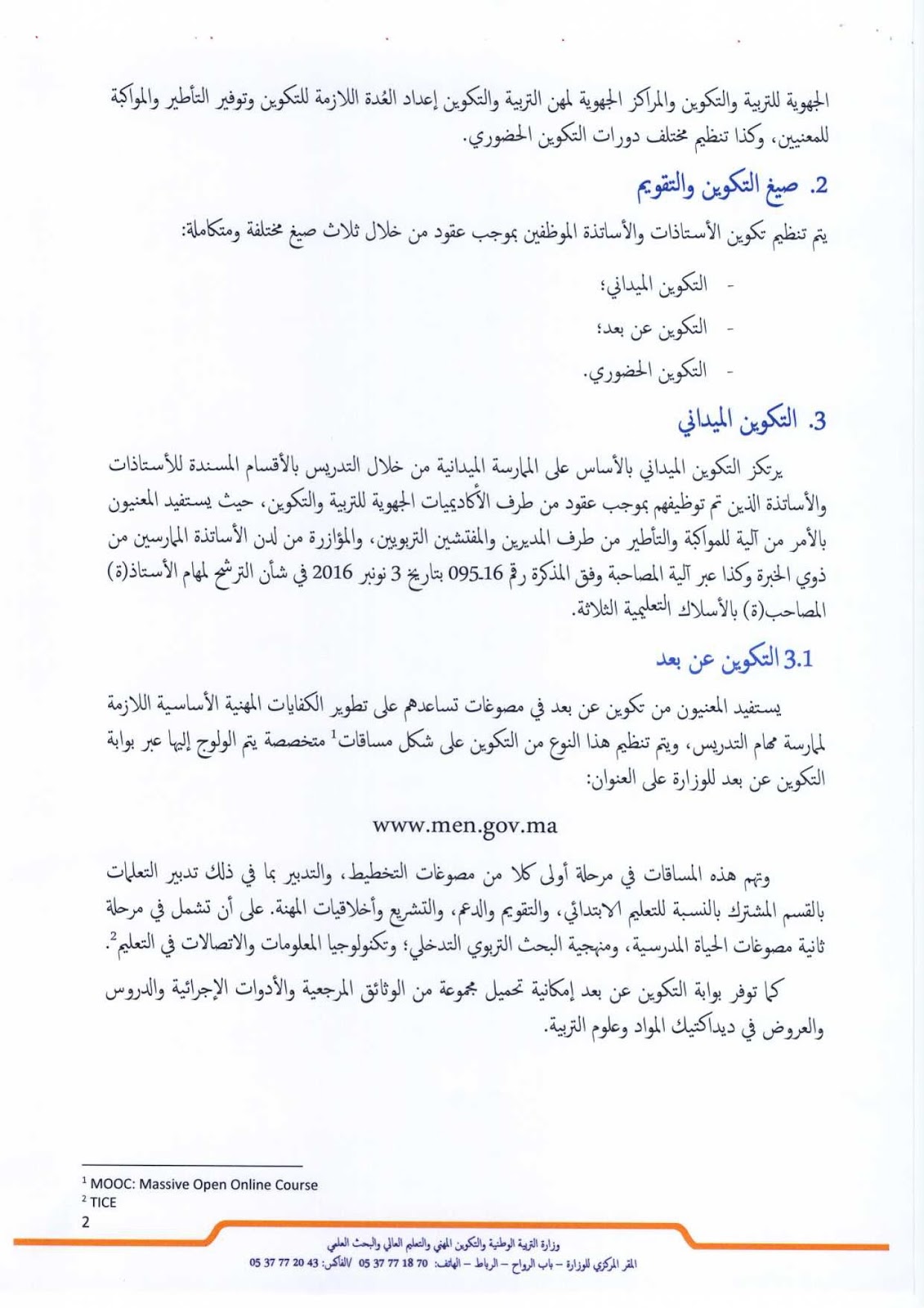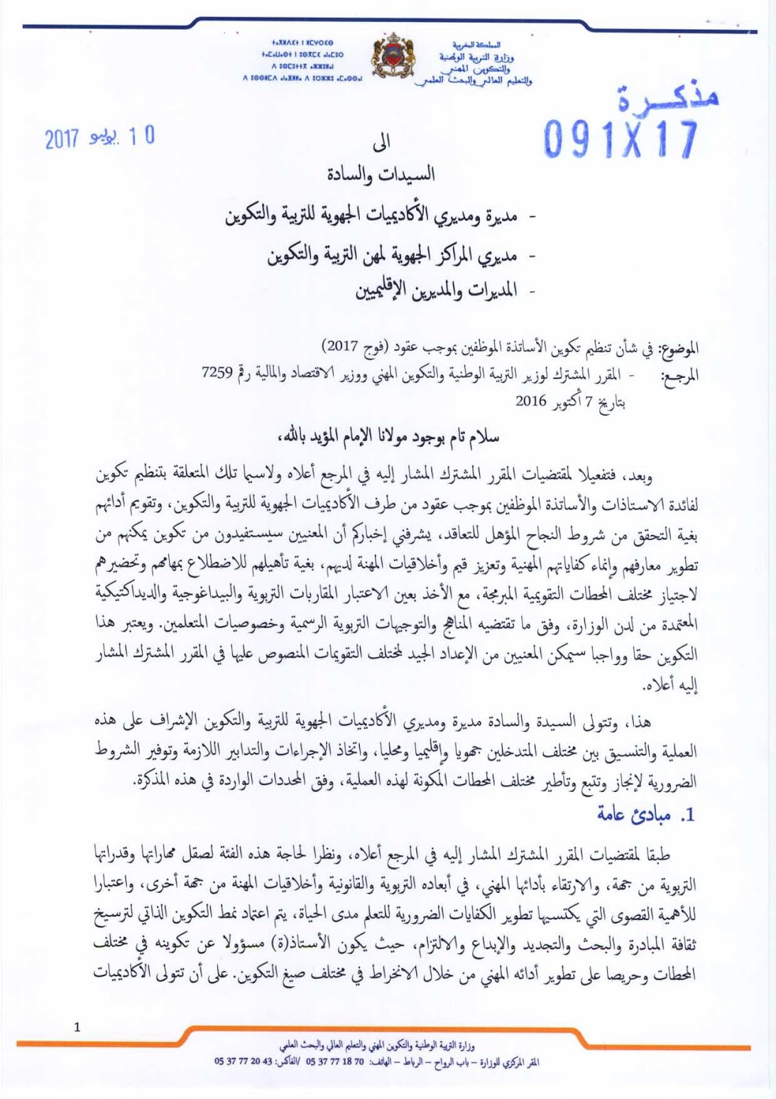 Alwadifa Maroc / Alwadifa TAALIM / Alwadifa tout le Maroc / Autres offres d'emploi / Par ville وظائف مذكرة في شأن تنظيم تكوين الأساتذة الموظفين بموجب عقود ShareSharePin It مذكرة في شأن تنظيم تكوين الأساتذة الموظفين بموجب عقود 2017