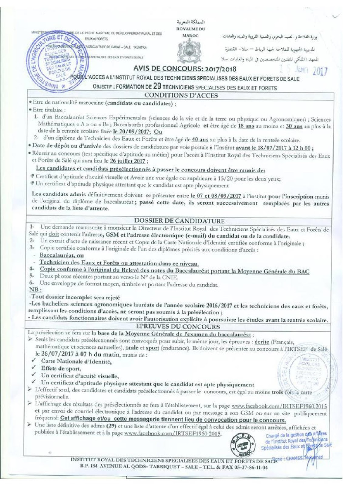 Alwadifa Maroc / Alwadifa Salé / Alwadifa technicien / Autres offres d'emploi / Offre d'emploi maroc / Offres d'emploi technicien / Par fonction / Par ville وظائف ولوج المعهد الملكي التقنيين المتخصصين في المياه والغابات سلا ShareSharePin It ولوج المعهد الملكي التقنيين المتخصصين في المياه والغابات سلا 2017-2018