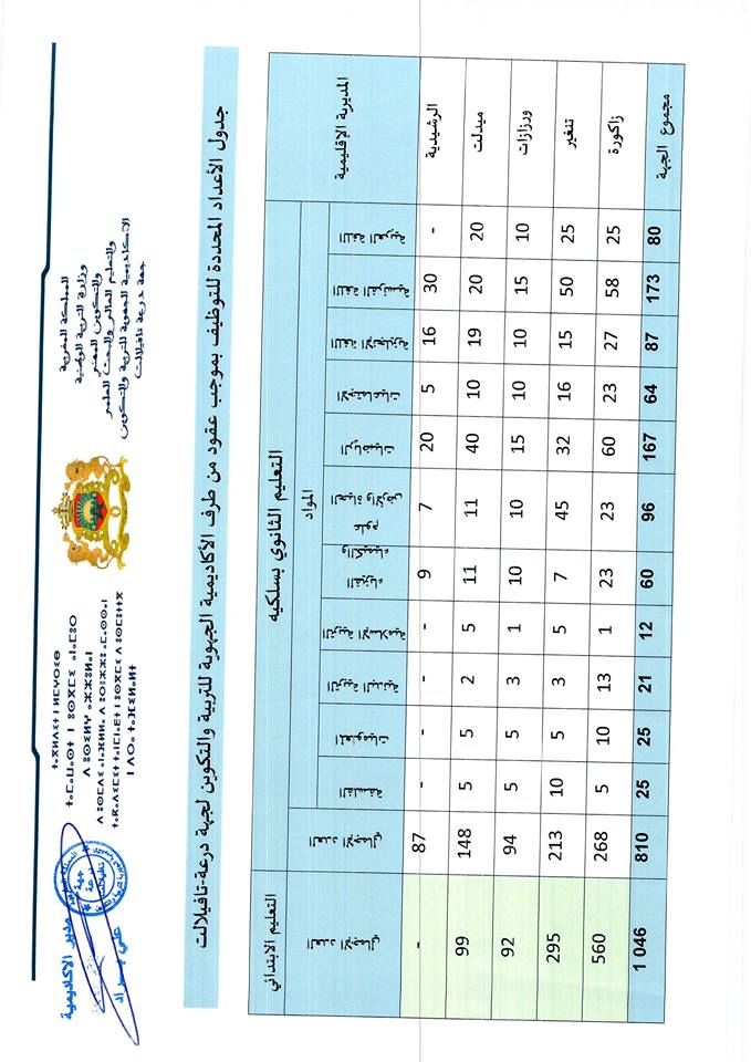 Alwadifa Errachidia / Alwadifa Maroc / Alwadifa TAALIM / Autres offres d'emploi / Par ville وظائف الأكاديمية الجهوية للتربية والتكوين لجهة درعة تافيلالت مباراة لتوظيف 1856 أستاذ بموجب عقد أخر أجل 21 يونيو ShareSharePin It الأكاديمية الجهوية للتربية والتكوين لجهة درعة تافيلالت مباراة لتوظيف 1856 أستاذ بموجب عقد أخر أجل 21 يونيو 2017