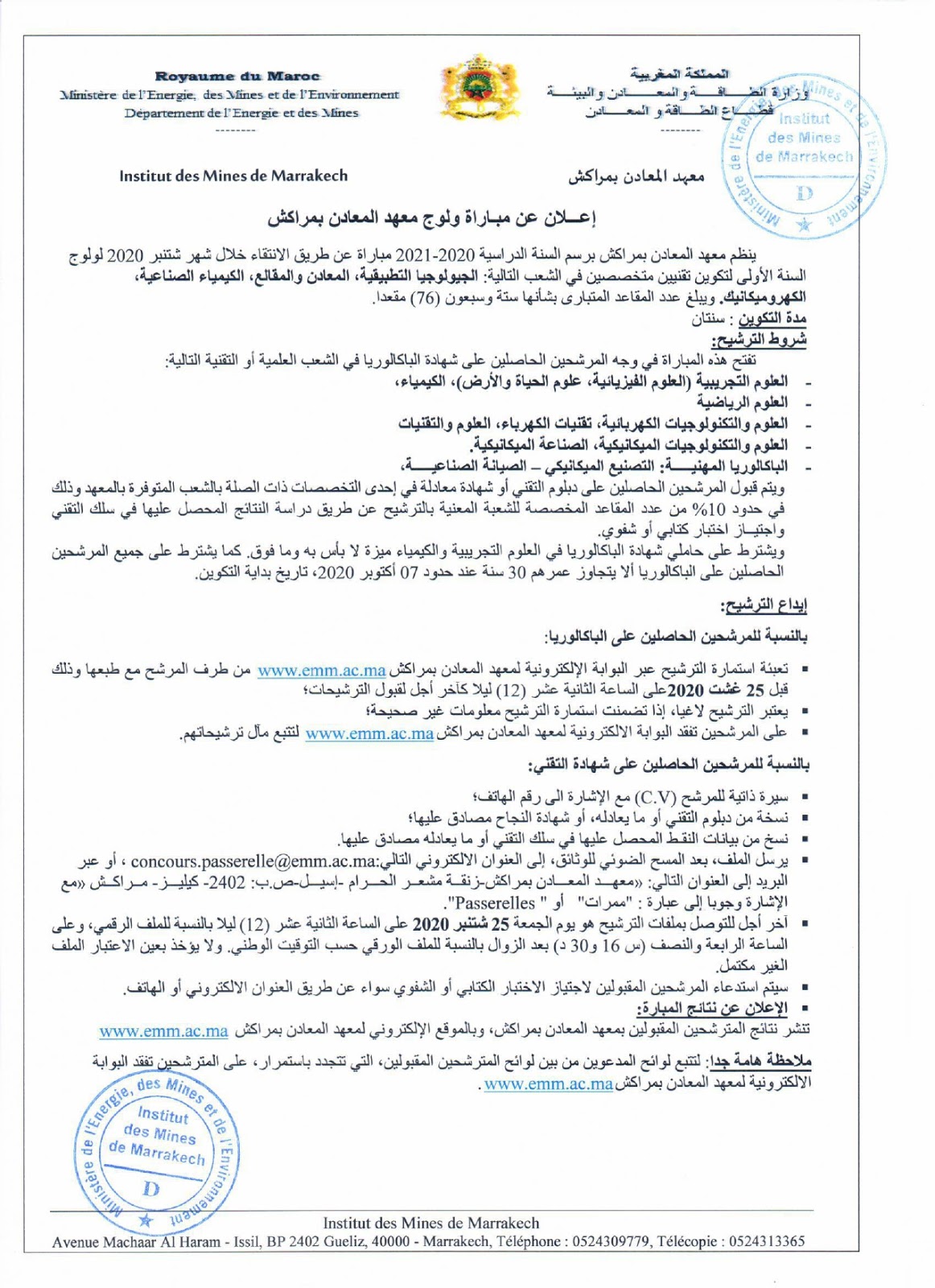 Alwadifa Maroc / Alwadifa Marrakech / Emploi public / Offre d'emploi maroc / Par ville مباراة ولوج معهد المعادن بمراكش 2020 ShareSharePin It مباراة ولوج معهد المعادن بمراكش 2020 Avis de concours IMM 2020 رابط الموقع