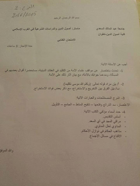 Alwadifa Maroc / Alwadifa master / Autres offres d'emploi / Modèles d'examen وظائف نماذج أسئلة الاختبار الكتابي لولوج ماستر أصول الدين و الدراسات الشرعية ShareSharePin It نماذج أسئلة الاختبار الكتابي لولوج ماستر أصول الدين و الدراسات الشرعية أسئلة الاختبار الكتابي لولوج ماستر أصول الدين و الدراسات الشرعية