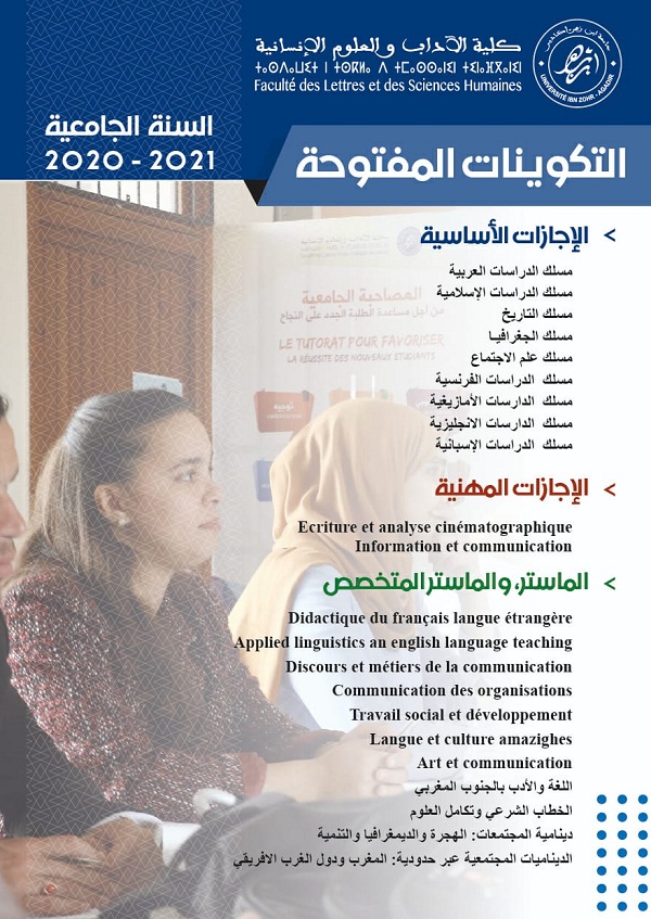 Alwadifa Agadir / Alwadifa Maroc / Master FLSH Agadir / Master Maroc / Offre d'emploi maroc / Par ville الماسترات المفتوحة بكلية الآداب والعلوم الإنسانية اكادير 2020-2021 ShareSharePin It الماسترات المفتوحة بكلية الآداب والعلوم الإنسانية اكادير 2020-2021 التسجيل القبلي مفتوح من 21 شتنبر إلى 24 اكتوبر 2020