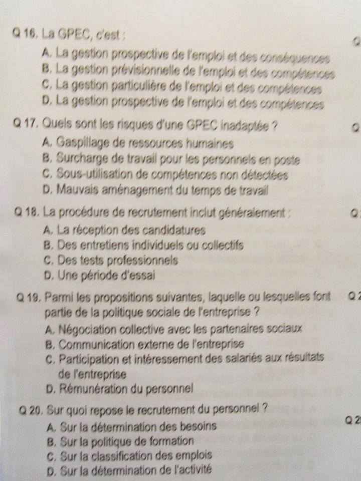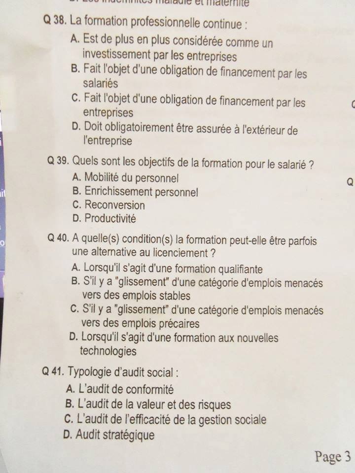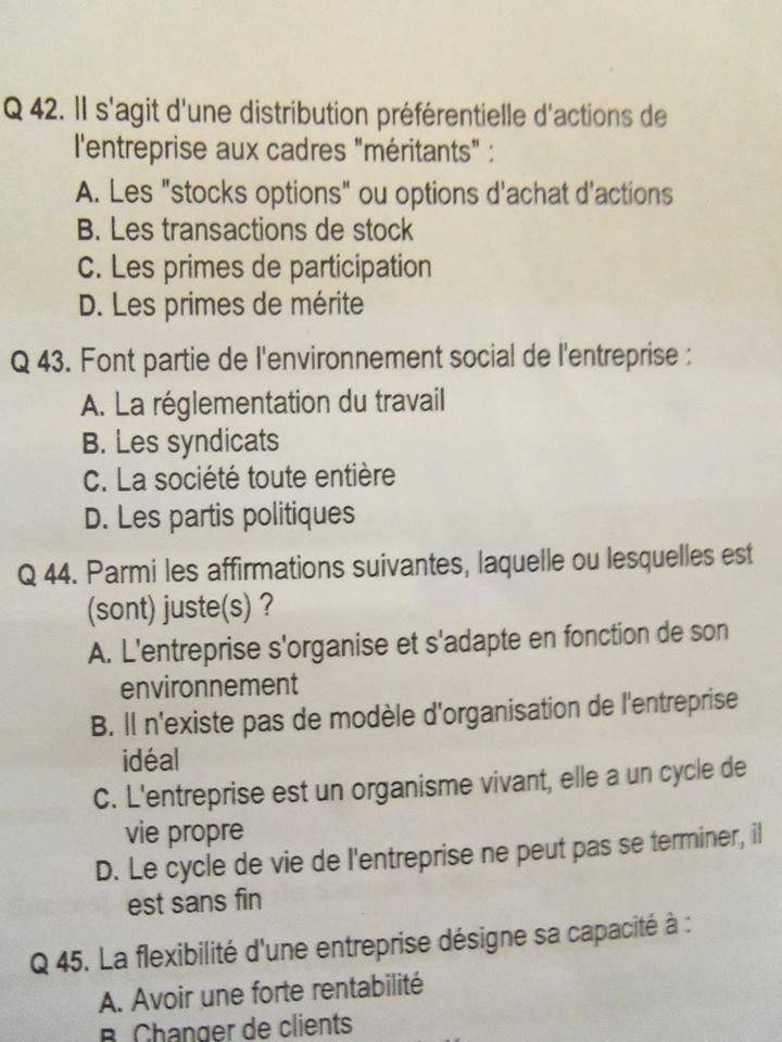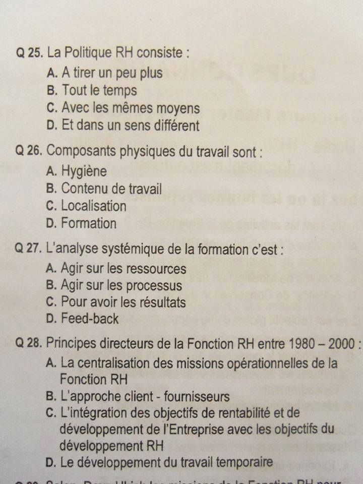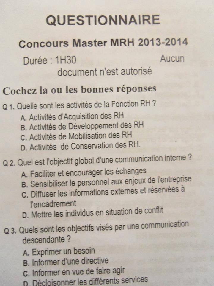 Epreuve du Concours d’accès au Master Management des Ressources Humaines (MRH)