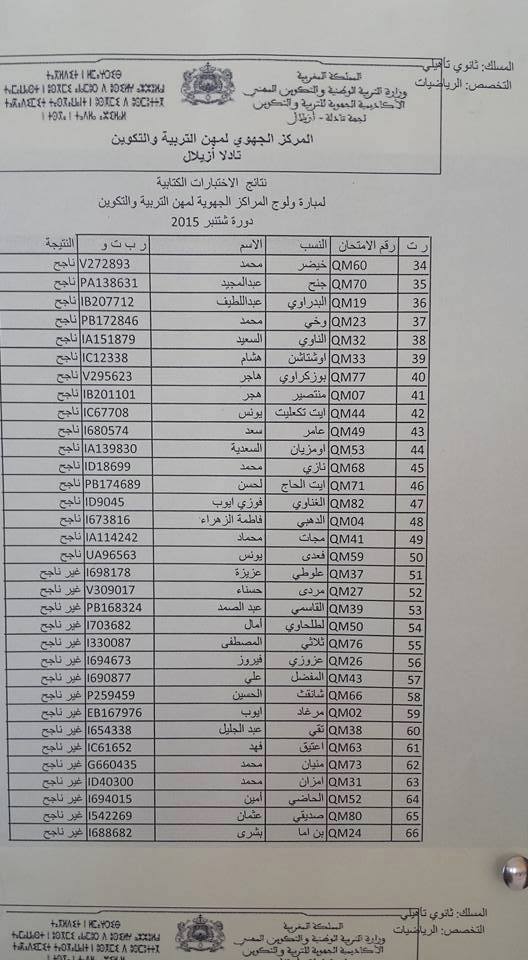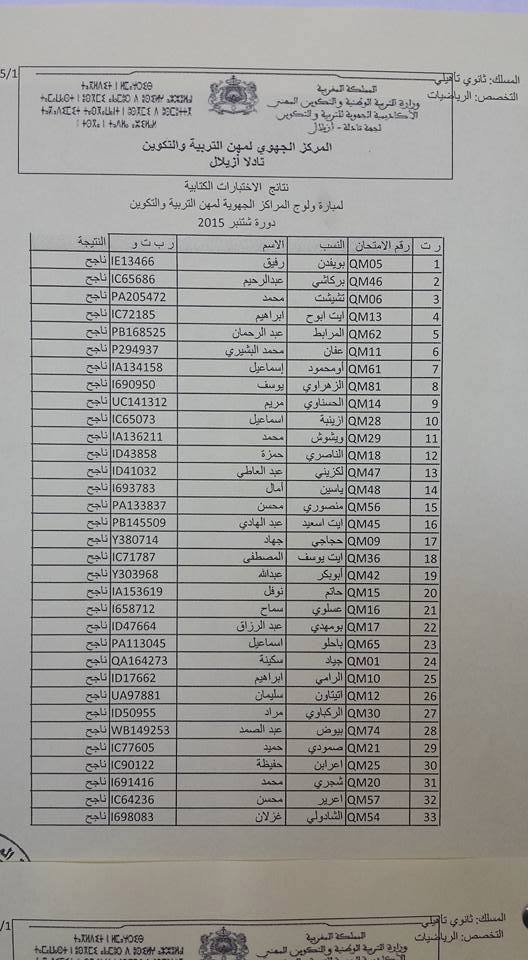 تادلة ازيلال نتائج الإمتحان الكتابي من مباراة ولوج المراكز الجهوية لمهن التربية والتكوين 2015-2016