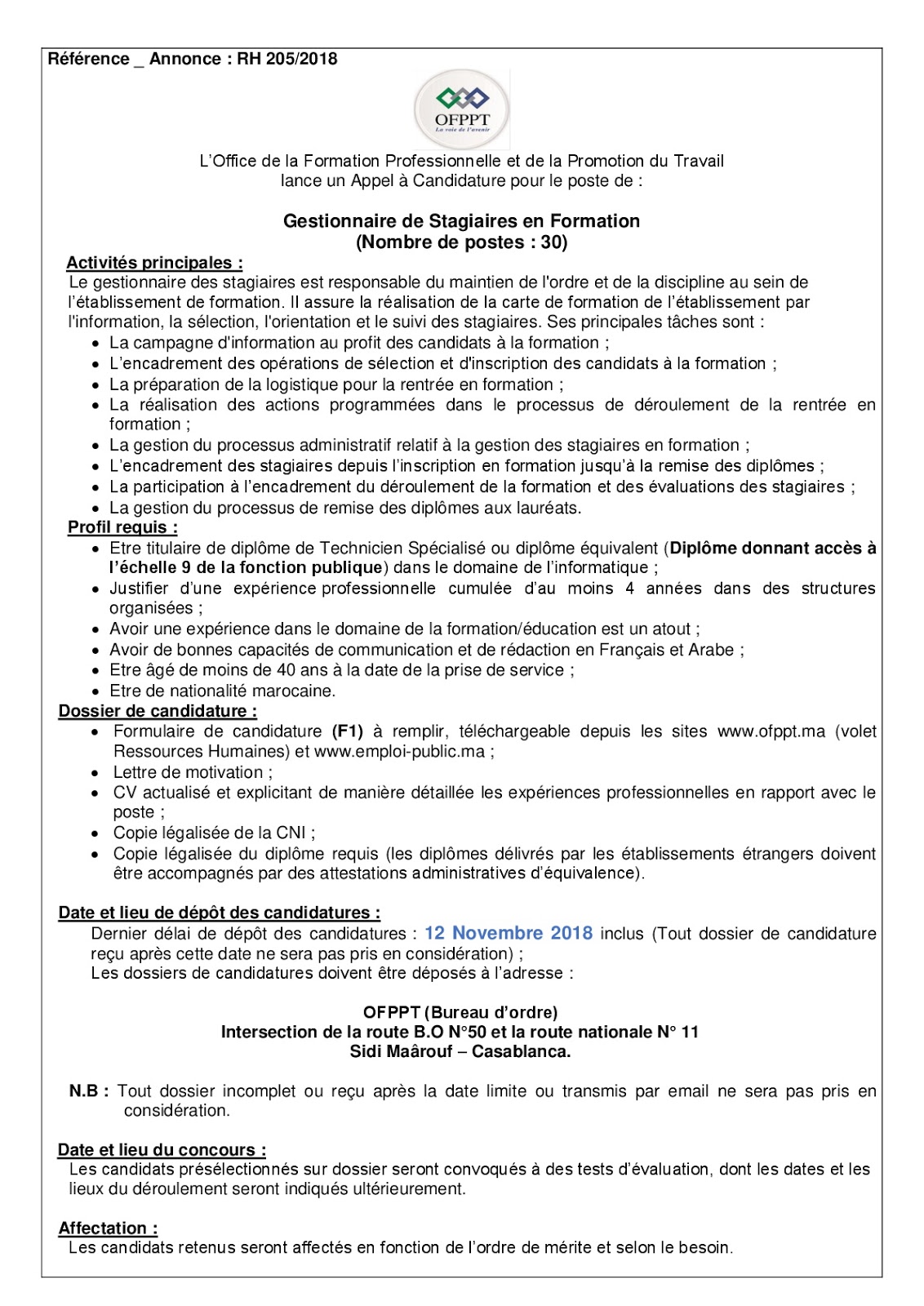 Alwadifa Maroc / Alwadifa tout le Maroc / Emploi diplomés / Offres d'emploi OFPPT / Par fonction / Par ville / Type مكتب التكوين المهني وإنعاش الشغل مباراة لتوظيف 30 مسيير شؤون المتدربين آخر أجل 12 نونبر 2018 ShareSharePin It مكتب التكوين المهني وإنعاش الشغل مباراة لتوظيف 30 مسيير شؤون المتدربين آخر أجل 12 نونبر 2018