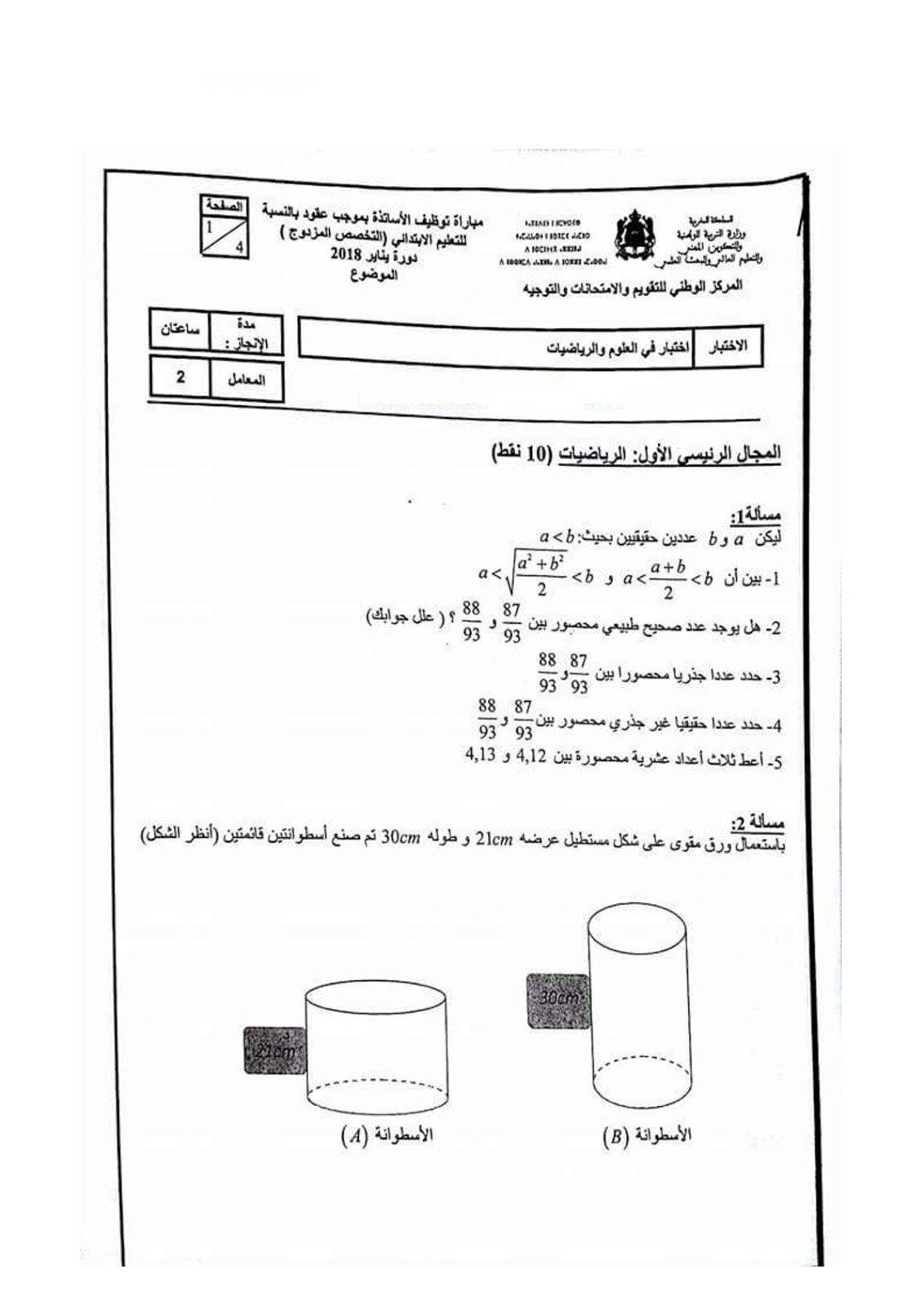 Alwadifa Maroc / Alwadifa TAALIM / Autres offres d'emploi / Modèles d'examen نماذج مباراة التوظيف بموجب عقود مادة الرياضيات السلك التعليم الابتدائي دورة يناير 2018 ShareSharePin It نماذج مباراة التوظيف بموجب عقود مادة الرياضيات السلك التعليم الابتدائي دورة يناير 2018
