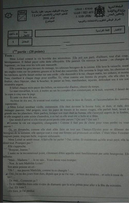 Alwadifa Maroc / Alwadifa TAALIM / Autres offres d'emploi / Modèles d'examen إختبارات مباراة التوظيف بالتعاقد – الابتدائي – مع عناصر الإجابة و أيضا سلم التنقيط ShareSharePin It إختبارات مباراة التوظيف بالتعاقد – الابتدائي – مع عناصر الإجابة و أيضا سلم التنقيط