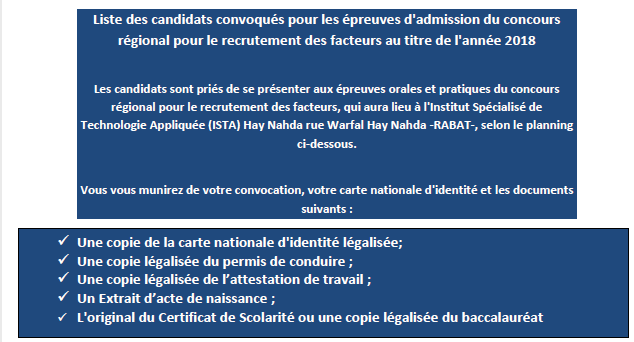 Alwadifa Barid Al-Maghrib / Alwadifa Maroc / Autres offres d'emploi / Offres d'emploi banque / Resultats du concours / Type بريد المغرب لائحة المدعوين لإجراء الاختبار الشفوي لمباراة توظيف 46 ساعي البريد ShareSharePin It بريد المغرب لائحة المدعوين لإجراء الاختبار الشفوي لمباراة توظيف 46 ساعي البريد لائحة المدعوين اضغط هنا