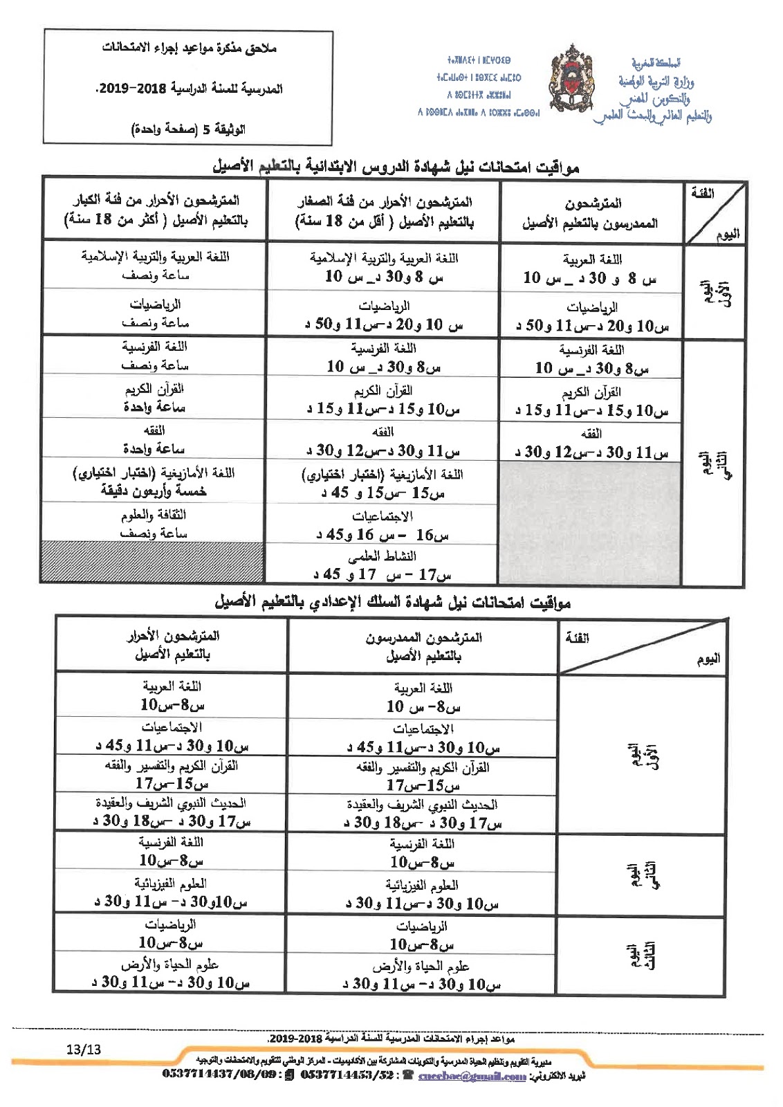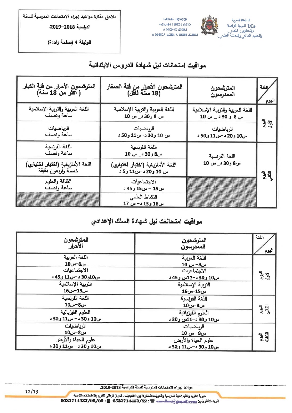 Alwadifa Maroc / Autres offres d'emploi / Bac 2023 / Ministère de l'éducation / Par ministere وزارة التربية الوطنية موعد امتحانات البكالوريا 2019 جميع المسالك والجدولة الزمنية للامتحان الجهوي والوطني ShareSharePin It وزارة التربية الوطنية موعد امتحانات البكالوريا 2019 جميع المسالك والجدولة الزمنية للامتحان الجهوي والوطني تحميل المذكرة اضغط هنا