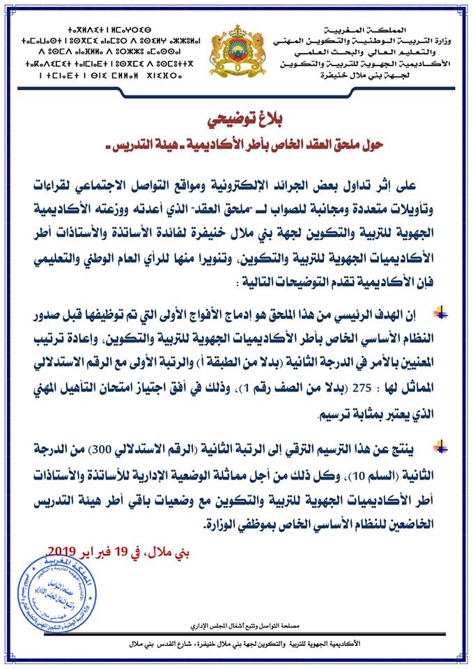Alwadifa Maroc / Autres offres d'emploi / Emploi news بلاغ توضيحي حول ملحق العقد الخاص بأطر الأكاديمية – هيئة التدريس ShareSharePin It بلاغ توضيحي حول ملحق العقد الخاص بأطر الأكاديمية – هيئة التدريس