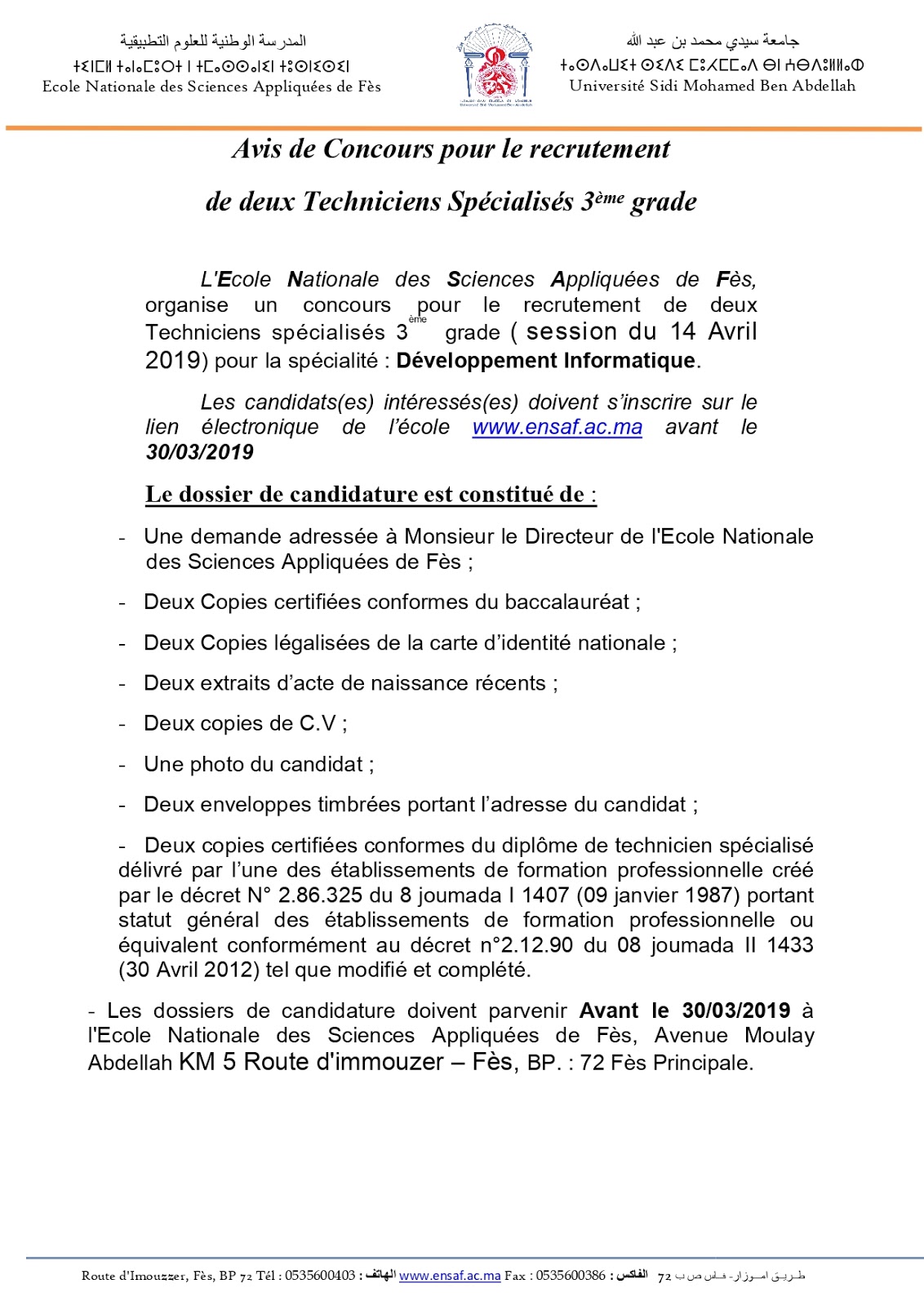 Alwadifa Fes / Alwadifa Maroc / Alwadifa technicien / Autres offres d'emploi / Etablissement Public / Offres d'emploi technicien / Par fonction / Par ville / Type جامعة سيدي محمد بن عبد الله فاس مباراة لتوظيف 02 تقنيين من الدرجة الثالثة آخر أجل 30 مارس 2019 ShareSharePin It جامعة سيدي محمد بن عبد الله فاس مباراة لتوظيف 02 تقنيين من الدرجة الثالثة آخر أجل 30 مارس 2019 نص الاعلان