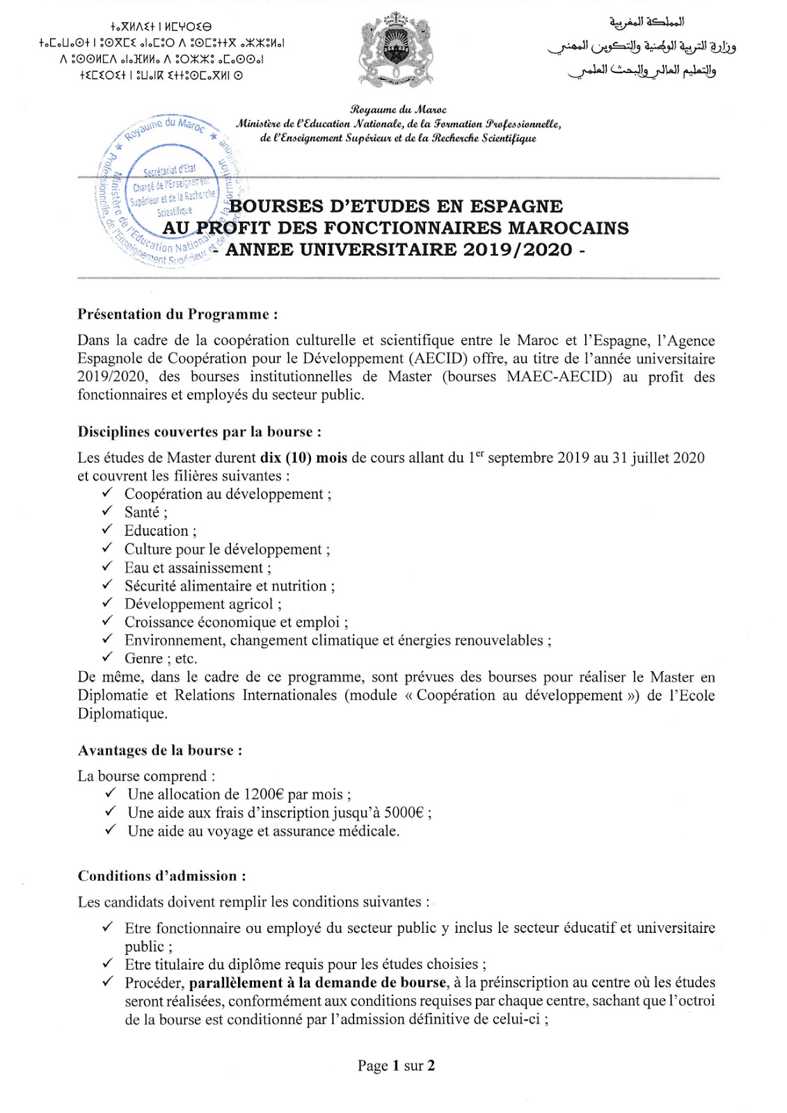 Alwadifa Maroc / Autres offres d'emploi / Bourses d'études إسبانيا: منح الدراسة بسلك الماستر لفائدة الموظفين والمستخدمين بالمؤسسات العمومية 2020/2019 ShareSharePin It إسبانيا: منح الدراسة بسلك الماستر لفائدة الموظفين والمستخدمين بالمؤسسات العمومية 2020/2019 الملفات المرفقة: Annonce_Espagne_fonctionnaires Espagne_Note_info_19_20