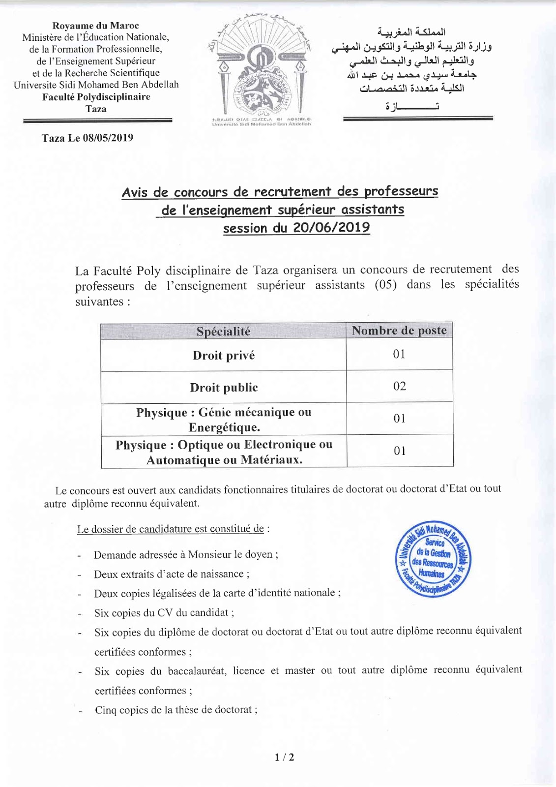 Alwadifa doctorat / Alwadifa Maroc / Alwadifa Taza / Autres offres d'emploi / Emploi public / Etablissement Public / Offre d'emploi maroc / Offres d'emploi doctorat / Par fonction / Par ville / Type الكلية المتعددة التخصصات تازة مباراة لتوظيف 05 أساتذة التعليم العالي مساعدين آخر أجل 5 يونيو 2019 ShareSharePin It الكلية المتعددة التخصصات تازة مباراة لتوظيف 05 أساتذة التعليم العالي مساعدين آخر أجل 5 يونيو 2019 نص الاعلان