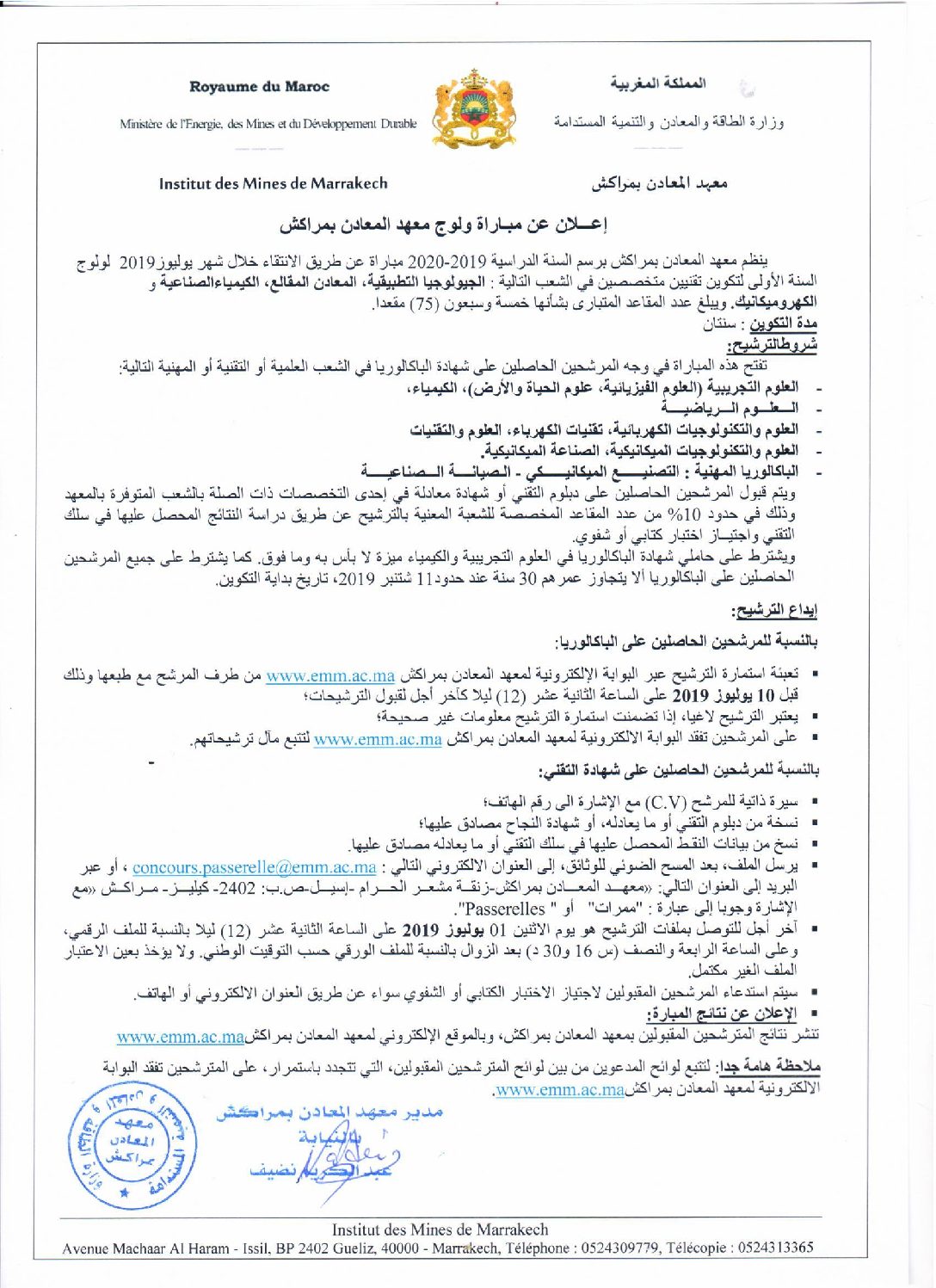 Alwadifa baccalauréat / Alwadifa Maroc / Alwadifa Marrakech / Autres offres d'emploi / Emploi public / Etablissement Public / Offre d'emploi maroc / Offres d'emploi baccalauréat / Par fonction / Par ville / Type إعلان عن مباراة ولوج معهد المعادن بمراكش آخر أجل للترشيح 10 يوليوز 2019 ShareSharePin It إعلان عن مباراة ولوج معهد المعادن بمراكش آخر أجل للترشيح 10 يوليوز 2019