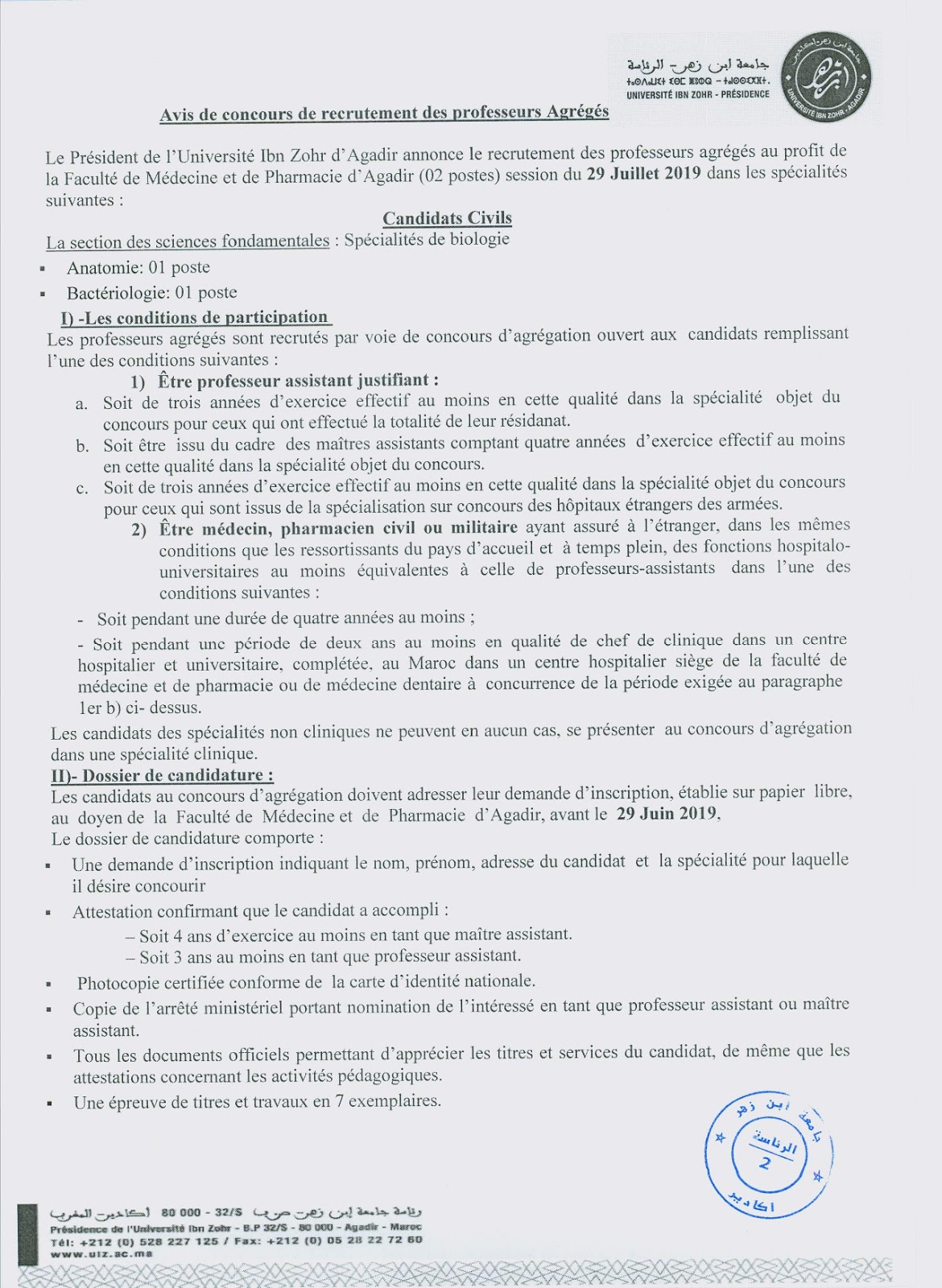 Alwadifa Agadir / Alwadifa doctorat / Alwadifa Maroc / Autres offres d'emploi / Emploi public / Etablissement Public / Offre d'emploi Agadir / Offre d'emploi maroc / Offre d'emploi maroc / Offres d'emploi doctorat / Par fonction / Par ville / Type كلية الطب و الصيدلة بأكادير مباراة توظيف 01 أستاذ مبرز في التخصص علم التشريح آخر أجل 28 يونيو 2019 ShareSharePin It كلية الطب و الصيدلة بأكادير مباراة توظيف 01 أستاذ مبرز في التخصص علم التشريح آخر أجل 28 يونيو 2019 نص الاعلان