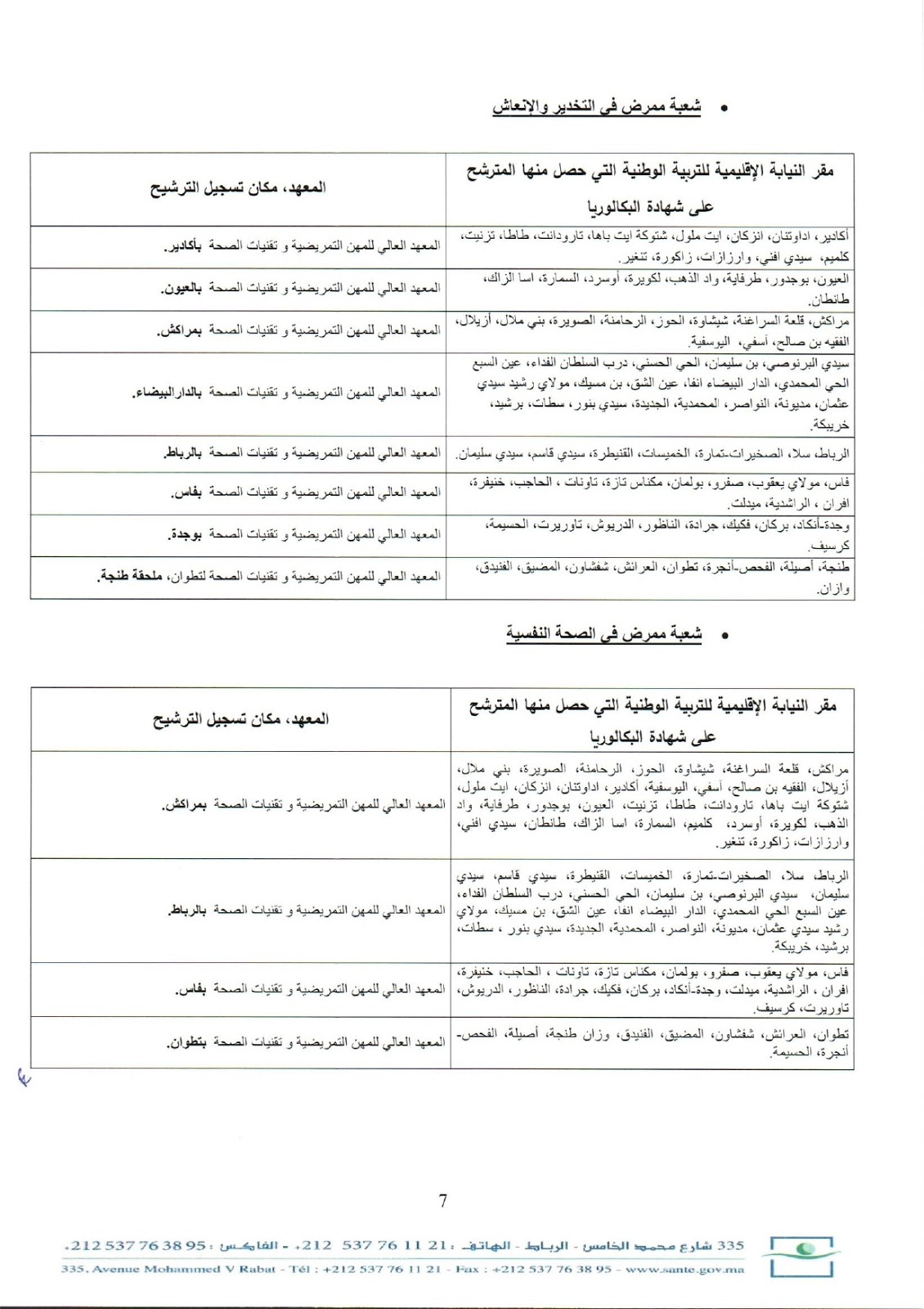 Alwadifa Maroc / Alwadifa tout le Maroc / Autres offres d'emploi / Emploi diplomés / Emploi public / Licence professionnelle / Ministère de la santé / Offre d'emploi maroc / Par fonction / Par ministere / Par ville وزارة الصحة مباراة ولوج سلك الإجازة بالمعاهد العليا للمهن التمريضية و تقنيات الصحة برسم السنة الدراسية 2019-2020 ShareSharePin It إعلان عن مباراة ولوج سلك الإجازة بالمعاهد العليا للمهن التمريضية و تقنيات الصحة برسم السنة الدراسية 2019-2020