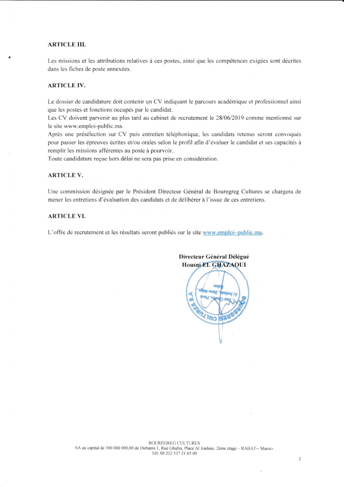 Alwadifa licence / Alwadifa Maroc / Alwadifa tout le Maroc / Autres offres d'emploi / Emploi diplomés / Emploi public / Etablissement Public / Offre d'emploi maroc / Offres d'emploi Bac + 3 / Offres d'emploi Bac + 4 / Offres d'emploi Bac + 5 / Offres d'emploi Licence / Par fonction / Par ville / Plusieurs profils / Type أبي رقراق للثقافات مباراة لتوظيف 03 اطر آخر أجل 2 يوليوز 2019 ShareSharePin It أبي رقراق للثقافات مباراة لتوظيف 03 اطر آخر أجل 2 يوليوز 2019 نص الاعلان